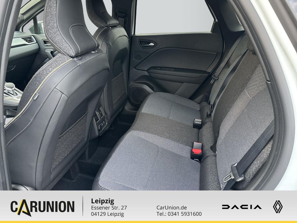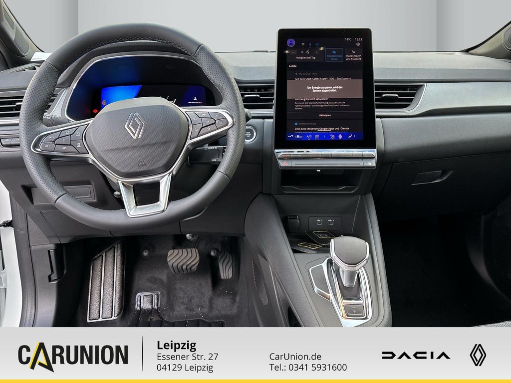 Sonderlackierung Perlmutt-Weiß, Winter-Paket, Lenkrad heizbar, Sitzheizung vorn, 2. USB-Anschluss in Mittelkonsole, 3-Punkt-Sicherheitsgurt hinten, Adaptive Geschwindigkeitsregelanlage (ACC), Airbag Beifahrerseite, Airbag Beifahrerseite abschaltbar, Airbag Fahrerseite, Anti-Blockier-System (ABS), Antriebsart: Frontantrieb, Audio-/Radio-Fernbedienung am Lenkrad, Außenspiegel elektr. heiz- und anklappbar, Außenspiegel schwarz, Bremsassistent, Dachantenne im Haifischflossen-Design, Dachhimmel Grau, Dachhimmel mit LED-Beleuchtung hinten, Einparkhilfe vorn. hinten und seitlich, Elektron. Stabilitäts-Programm (ESP), Fahrassistenz-System: Abstandswarner, Fahrassistenz-System: Autonomer Notbrems-Assistent mit Frontkollisionswarnung und Fußgänger- und Fahrraderkennung, Fahrassistenz-System: Berganfahr-Assistent (HSA), Fahrassistenz-System: Müdigkeitserkennungs-Sensor, Fahrassistenz-System: Multi-Sense (Fahrmodusschalter), Fahrassistenz-System: Sicherheitssystem mit automatischem Notruf (ERA GLONASS / eCall), Fahrassistenz-System: Spurhalteassistent Aktiv, Fahrassistenz-System: Verkehrszeichenerkennung mit Geschwindigkeits-Warnanzeige, Fensterheber elektr. mit Impulsgeber links vorn, Fensterheber elektrisch hinten, Freisprecheinrichtung Bluetooth, Getriebe Automatik - Multi-Mode, Heckscheibe heizbar, Hybrid 105 kW E-Tech (Motor 1.6 Ltr. - 69 kW), Induktionsladeschale für Smartphone, Infotainment-System: OpenR link (10.4" Touchscreen. DAB+. Navigationssystem mit Google Maps), Innenbeleuchtung LED, Innenraumfilter: Pollenfilter, Innenspiegel mit Abblendautomatik, Innenspiegel rahmenlos, Isofix-Aufnahmen für Kindersitz, Isofix-Aufnahmen für Kindersitz an Beifahrersitz, Karosserie: 5-türig, Klimaautomatik, Koffer-/Laderaumboden doppelt, Kombiinstrument digital (10.0 Zoll), Kopf-Airbag-System vorn, Lenkrad (Leder-Optik), Licht- und Regensensor, LM-Felgen, Mittelkonsole mit offenem Staufach. freischwebend, Parkbremse elektrisch mit Auto-Hold-Funktion, Radstand Standard, Reifendruck-Kontrollsystem, Rückfahrkamera, Rücksitzbank geteilt/klappbar (1/3-2/3), Schadstoffarm nach Abgasnorm Euro 6e, Schaltpunktanzeige, Scheinwerfer Full-LED mit LED-Signatur (Pure Vision), Seitenairbag vorn, Sitz vorn links verstellbar (6-fach), Sitz vorn rechts verstellbar (6-fach), Sitzbezug / Polsterung: Stoff Techno, Verglasung hinten stark abgedunkelt, Warnanlage für Sicherheitsgurte, Zentralverriegelung / Startanlage Handsfree Entry & Drive, Zentralverriegelung mit Fernbedienung, Zentralverriegelung, Navigations-Kartenmaterial, ESP mit Berganfahrhilfe, Tagfahrlicht, Einfarblackierung, Multi-Sense, 18-Zoll-Leichtmetallräder Gravity, Induktive Smartphoneladefläche, Sicherheitsabstandswarne