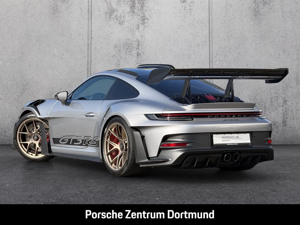 - Weiteres: Das Fahrzeug wird bis zur Übergabe nach Maßgabe der Porsche Standards aufbereitet. Dabei werden, wenn notwendig, auch einzelne Bauteile ausgetauscht oder Lackierarbeiten durchgeführt., (P70) Clubsportpaket mit zusätzlichem straßenzugelassenen 1 kg-Feuerlöscher, (04I) Weissach-Paket ohne Überrollkäfig, (P70) Weissach-Paket, (2UH) Liftsystem Vorderachse, (0I2) 90 Liter Kraftstofftank, (56R) 20-/21-Zoll GT3 RS Magnesium Leichtbau-Schmiederäder, (FZ1) Sicherheitsgurte indischrot, (5DC) Türöffnerschlaufe schwarz, (2Y9) Überrollkäfig aus kohlefaserverstärktem Kunststoff (CfK), (5XK) Sonnenblenden Race-Tex., (P14) Automatisch abblendende Innen-/Außenspiegel mit integriertem Regensensor, (VW7) Leichtbau- und Geräuschschutzverglasung inklusive Privacy-Verglasung, (KA2) ParkAssistent hinten inkl. Rückfahrkamera