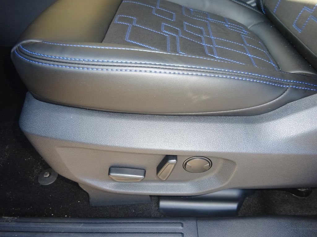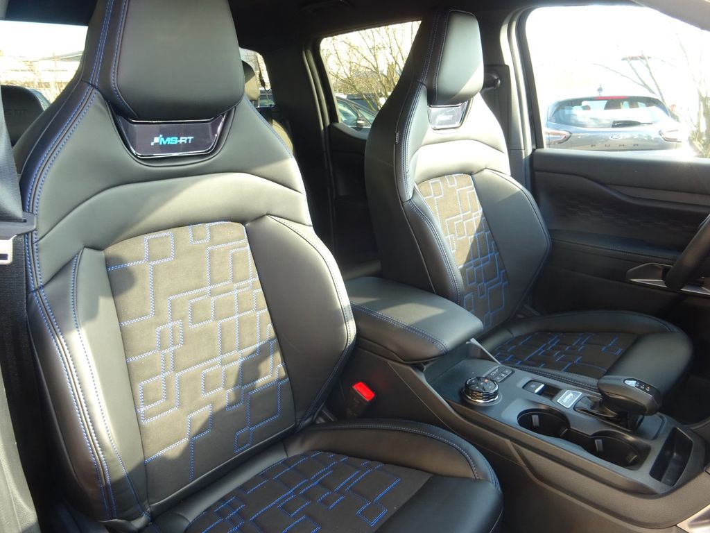- Polster: Leder Sitzbezug MS-RT Sitzmittelbahn: Wildleder mit blauem Sitching Sitzpolster: Leder in Ebony mit blauen Kontrastnähten