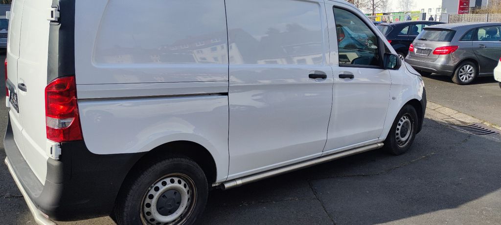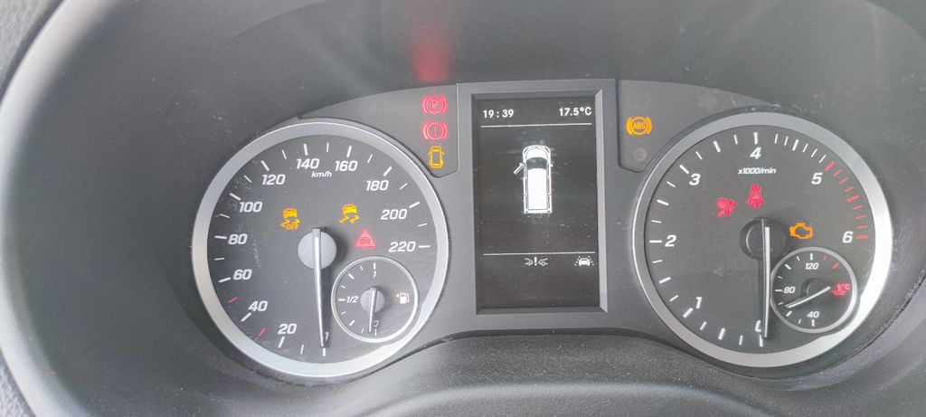 3-Tasten-Fernbedienung für Zentralverriegelung, 3. Bremsleuchte, Adaptives Bremslicht, Airbag Beifahrerseite, Airbag Fahrerseite, Anfahrhilfe (Berganfahr-Assistent), Außenspiegel asphärisch, beide, Außentemperaturanzeige, Befestigungsschienen für Dachträger, BlueEfficiency-Paket, Bremsassistent, Bremssystem mit ABS+ASR, Design- und Ausstattungslinie Base, Fahrassistenz-System: Attention-Assist (Müdigkeitserkennungs-Sensor), Fahrassistenz-System: Pannenmanagement, Fahrassistenz-System: Seitenwind-Assistent, Frontscheibe mit Scheibenantenne, Generator 185 A, Getriebe 6-Gang - FSG, Getränkehalter hinten, Getränkehalter vorn, Gurtstraffer, Haltegriff Beifahrerseite, Handschuhfach abschließbar, Karosserie/Aufbau: Kasten Standard, Karosserie/Aufbau: Kompakt, Kommunikationsmodul (LTE) für digitale Dienste, Laderaumtrennwand durchgehend, Lastenverankerung / Verzurrösen, Mercedes-Benz Notrufsystem, Modellpflege, Motor 1,7 Ltr. - 100 kW CDI KAT, Nebelschlussleuchte, Radstand 3200 mm, Schadstoffarm nach Abgasnorm Euro 6d-TEMP, Schiebetür Lade-/Fahrgastraum rechts, Sicherheitsgurt-System mit Warnanlage (Fahrer-/Beifahrerseite), Sitzbezug / Polsterung: Stoff, Sitze im Fahrerhaus: Fahrersitz verstellbar, Stahlfelgen 6,5x16, Verkleidung Fenstersäulen, Verkleidung im Lade-/FG-Raum: Hartfaser halbhoch, Verzurrschienen im Laderaum - Seitenwand an Dachrahmen, Wartungsintervall-Anzeige Assyst, Zul. Gesamtgewicht 2,80 t
