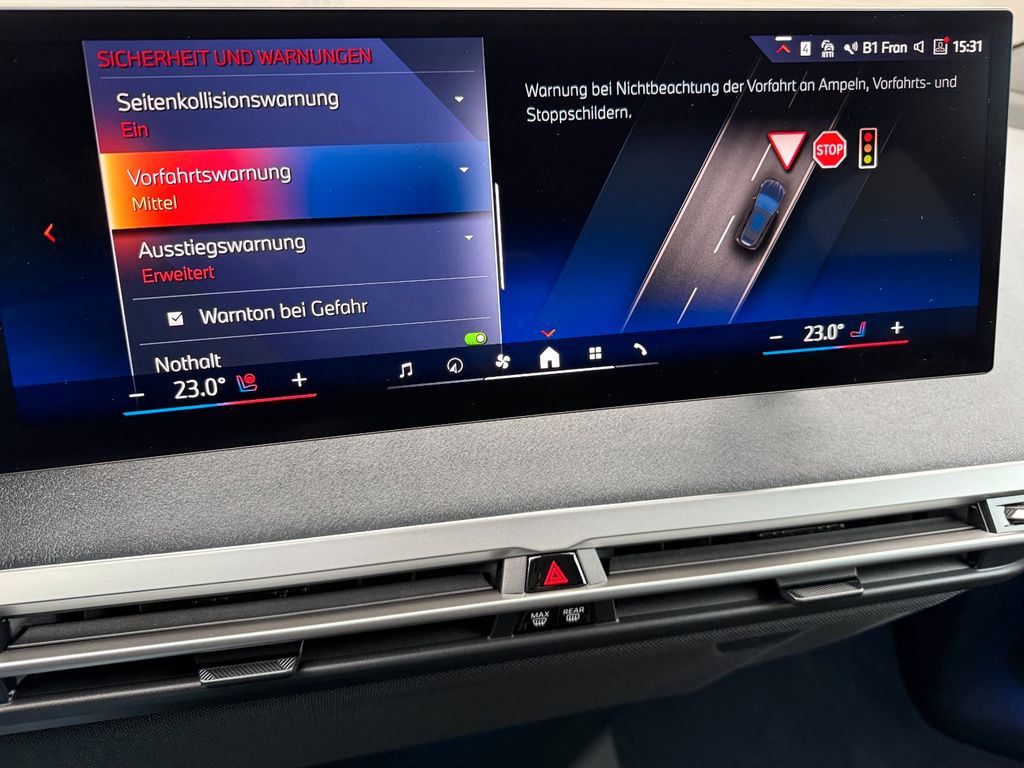 3. Bremsleuchte LED, Airbag Fahrer-/Beifahrerseite, Akustischer Fußgängerschutz (Außensound), Ambiente-Beleuchtung, Anhänger-Stabilisierungs-Programm (ASL), Ausstattungs-Paket: Connected Professional, Automatische Stabilitäts-Control (ASC), Außenspiegel-Paket (erweitert), BMW IconicSounds Electric (Soundgenerator), BMW Live Cockpit Professional, Bremsenergierückgewinnung (Rekuperationssystem), Dachhimmel Anthrazit, Diebstahlsicherung für Räder (Felgenschlösser), Doppeltonfanfare, Dynamische Bremsleuchte, Dynamische Stabilitäts-Control (DSC) mit erweiterter Umfang, Dynamische Tractions Control (DTC), Elektromotor 190 kW (System: 400 kW) VA, Elektromotor 230 kW (System: 400 kW) HA, Elektromotor 400 kW (cont. 150 kW), Erste Hilfe-Kasten / Verbandkasten, Fahrassistenz-System: Active Guard (Bremsassistent), Fahrassistenz-System: Active Guard Plus (Spurhalteassistent, Frontkollisionswarnung), Fahrassistenz-System: Anfahr-Assistent, Fahrassistenz-System: Aufmerksamkeits-Assistent, Fahrassistenz-System: Fernlichtassistent, Fußgänger-Schutzsystem passiv, Gepäckraum-Abtrennung (Netz), Getriebe für Elektrofahrzeug, Heckleuchten LED, Induktionsladeschale für Smartphone (Wireless Charging), Innenspiegel rahmenlos, Isofix-Aufnahmen für Kindersitz an Rücksitz, Karosserie: 5-türig, Kopf-Airbag-System hinten, Kopf-Airbag-System vorn, Ladekabel (5,0 m) mit Typ 2-Stecker (Mode 3, 22 kW), Lenkrad heizbar, M Sport, Mittelarmlehne hinten, Modellpflege, Parkassistent-Paket, Parkbremse elektrisch, Personalisierungssystem (BMW ID), Radioempfang digital (DAB+), Radstand Standard, Reifen-Reparaturset Plus (Mobility-Pack), Reifendruck-Kontrollsystem, Rücksitzlehne geteilt/klappbar (40:20:40), Scheibenwaschdüsen heizbar, Seitenairbag vorn, Service-System: ConnectedDrive Services, Service-System: Intelligenter Notruf