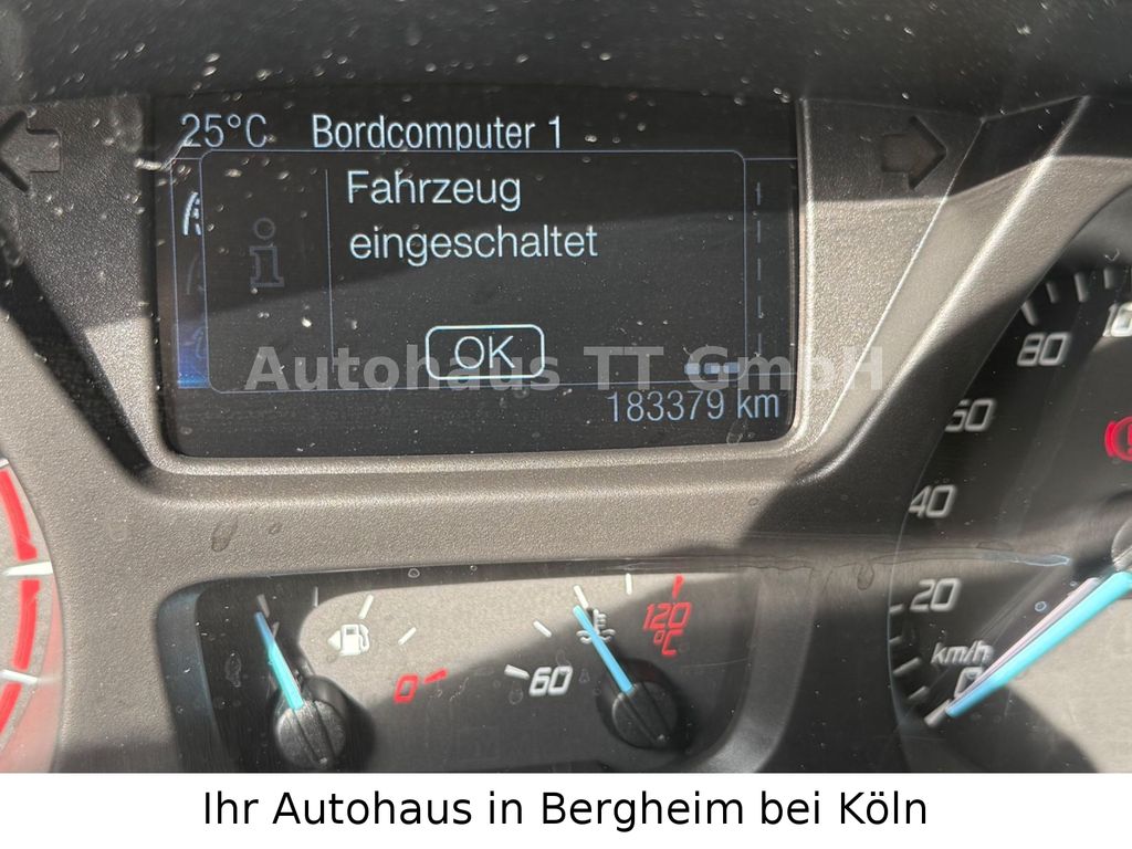 2. Batterie, 3. Bremsleuchte, Ablage im Dachhimmel Fahrerhaus, Airbag Fahrerseite, Antriebs-Schlupfregelung (ASR), Außenspiegel elektr. verstell- und heizbar, Blinkleuchte in Außenspiegel integriert, Bodenbelag: Vinyl im Lade-/Fahrgastraum, Bordcomputer, Dachverkleidung Himmel im Fahrgastraum, Drehzahlmesser, Elektr. Bremskraftverteilung (EBD), Elektron. Differentialsperre (EDS), Fahrassistenz-System: Berganfahr-Assistent, Generator 165 A, Haltegriff B-Säule, Heizung mit Umluftschaltung, Innenraumfilter: Pollenfilter, Karosserie/Aufbau: Kasten Grossraum (Standard), Kühlergrill silber, Laderaumtrennwand hoch hinter Fahrer und Beifahrer, Lenksäule (Lenkrad) höhen-/längsverstellbar, Leuchtweitenregelung, LKW-Zulassung, Markierungsleuchten seitlich, Motor 2,0 Ltr. - 96 kW TDCi KAT, Parkpilotsystem vorn und hinten, Produktionsstätte: Otosan, Radstand 3750 mm, Radvollabdeckungen, Rahmen verlängert, Reserverad in Fahrbereifung, Schadstoffarm nach Abgasnorm Euro 6, Schiebetür Lade-/Fahrgastraum rechts, Seitenschutzleisten breit (Seitenbeplankung), Sitz-Paket 13: Fahrersitz (4-fach verstellbar) - Beifahrerdoppelsitz, Stoff, Sitze im Lade-/FG-Raum: 1.Reihe, 3er-Sitzbank, Stahlfelgen 6,5x16, Stoßfänger teillackiert, Trend, Trittstufe hinten integriert, Verglasung getönt, Zweiter Schlüssel mit Fernbedienung klappbar
