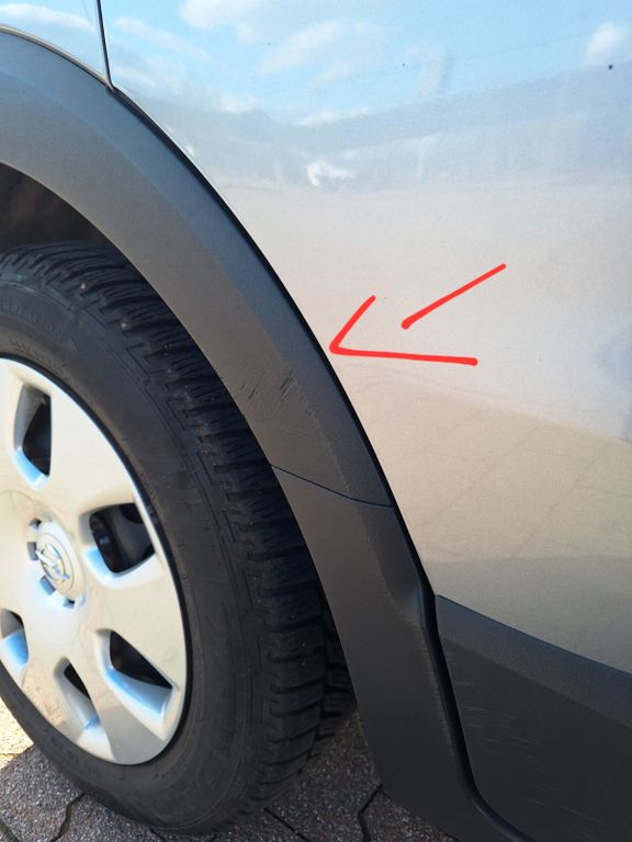 Auf der Beifahrerseite befinden sich leichte Kratzer an der Stoßstange, an der Tür sowie an den hinteren Kunststoffteilen (siehe Bilder). Diese stammen vom Vorbesitzer, der beim Einparken in der Garage leicht gestreift ist.