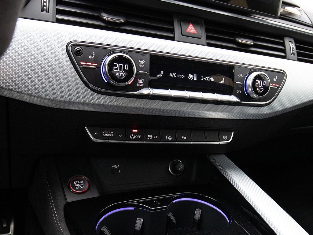 Mittelkonsole seitlich in Alcantara, Fußmatten Audi exclusive mit Schriftzug und Kontrastnaht, Sicherheitsgurte Audi