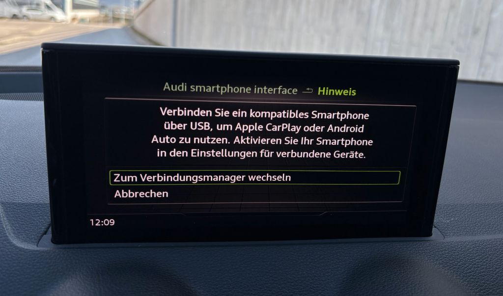 Audi connect (Notruf- und Assistance-System), Außenspiegel Wagenfarbe, Blinkleuchten LED in Außenspiegel integriert, Dachspoiler, Einstiegsleisten mit Aluminiumeinlage und Schriftzug, beleuchtet, Frontscheibe mit Bandfilter oben, Funkschlüssel, Fußmatten Velours, Geschwindigkeits-Begrenzeranlage, Heckleuchten (Glühlampen),