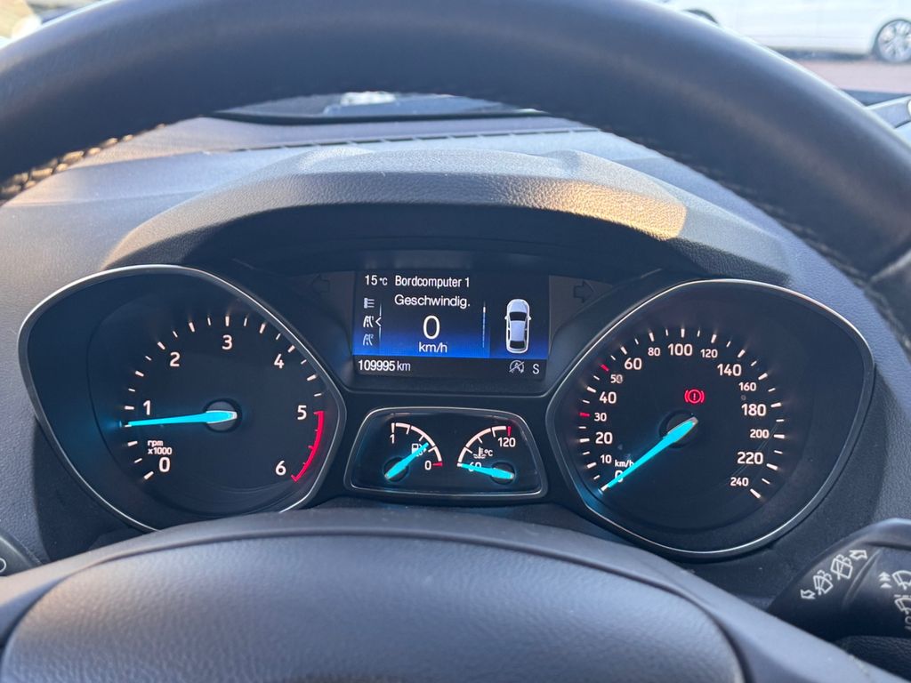 Antischlupfregelung (ASR), Audio-Navigationssystem Ford SD (mit Ford SYNC), Audiobedienung am Lenkrad, Außenspiegel elektr. anklappbar, Außenspiegel elektr. verstell- und heizbar, Batterie verstärkt, Bordcomputer, Brillenfach in Dachhimmel / Dachkonsole integriert, Chromeinfassung Seitenscheiben, Dachreling (Aluminium), Dachspoiler Wagenfarbe, Dimmer Instrumentenbeleuchtung, Elektr. Bremskraftverteilung (EBD), Fahrassistenz-System: Berganfahr-Assistent (Hill-Holder), Fahrassistenz-System: Notbrems-Assistent, Fensterheber elektrisch vorn + hinten mit Komfortschließung, Fußraumleuchte vorn, Innenausstattung: Aluminium-Dekor, Innenraumfilter: Staub- und Pollenfilter, Intelligent Protection System (IPS), Isofix-Aufnahmen für Kindersitz, Karosserie: 5-türig, Klimaautomatik 2-Zonen, Kühlergrill silber, Lenksäule (Lenkrad) höhen-/längsverstellbar, Leuchtweitenregelung, Modellpflege, Motor 2,0 Ltr. - 110 kW TDCi KAT, My Key (2. Fahrzeugschlüssel programmierbar), Parkbremse elektrisch, Radstand 2690 mm, Reifen-Reparaturkit, Reifendruck-Kontrollsystem, Rücksitzlehne geteilt/klappbar (60:40), Schadstoffarm nach Abgasnorm Euro 6d-TEMP, Schalt-/Wählhebelgriff Leder, Schaltpunktanzeige, Sitz vorn links höhenverstellbar, Sitzheizung vorn, Sonnenblende links mit Spiegel (beleuchtet), Sonnenblende rechts mit Spiegel (beleuchtet), Sportsitze vorn, Start/Stop-Anlage, Steckdose (12V-Anschluß) im Koffer-/Laderaum, Türgriffe außen Wagenfarbe, Unterfahrschutz, Unterfahrschutz hinten, Verglasung getönt, Warnanlage für Sicherheitsgurte hinten, Zierleisten unterhalb Seitenscheiben Chrom-Dekor, Zusatzheizer für Dieselmotor