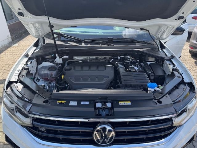 Standheizung und -lüftung mit Vorwahluhr und Fernbedienung; Sitzmittelbahnen der Vordersitze und deräußeren Rücksitze in Leder "Vienna" gelocht, "R-Line"-Logo vorn; Digital Cockpit Pro, mehrfarbig, verschiedene Info-Profile wählbar; Multifunktions-Sportlenkrad in Leder, beheizbar, mit Touch-Bedienung und Schaltwippen; Bordcomputer; Klimaanlage "Air Care Climatronic" mit Aktiv-Kombifilter, Bedienelementen hinten und 3-Zonen-Temperaturregelung; Gepäckraumabdeckung; Dachhimmel schwarz
