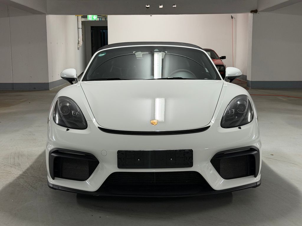 Erleben Sie die Faszination eines echten Sportwagens mit diesem Porsche Boxster Spyder aus dem Jahr 2020.Der leistungsstarke 6-Zylinder Motor mit 420 PS und einem Hubraum von 3995 ccm bietet ein beeindruckendes Fahrerlebnis mit Heckantrieb und manueller Schaltung. Die weiße Außenlackierung in Kombination mit dem schwarzen Alcantara-Interieur, den Carbon Schalensitzen unterstreicht den sportlichen Charakter dieses Zweisitzers.