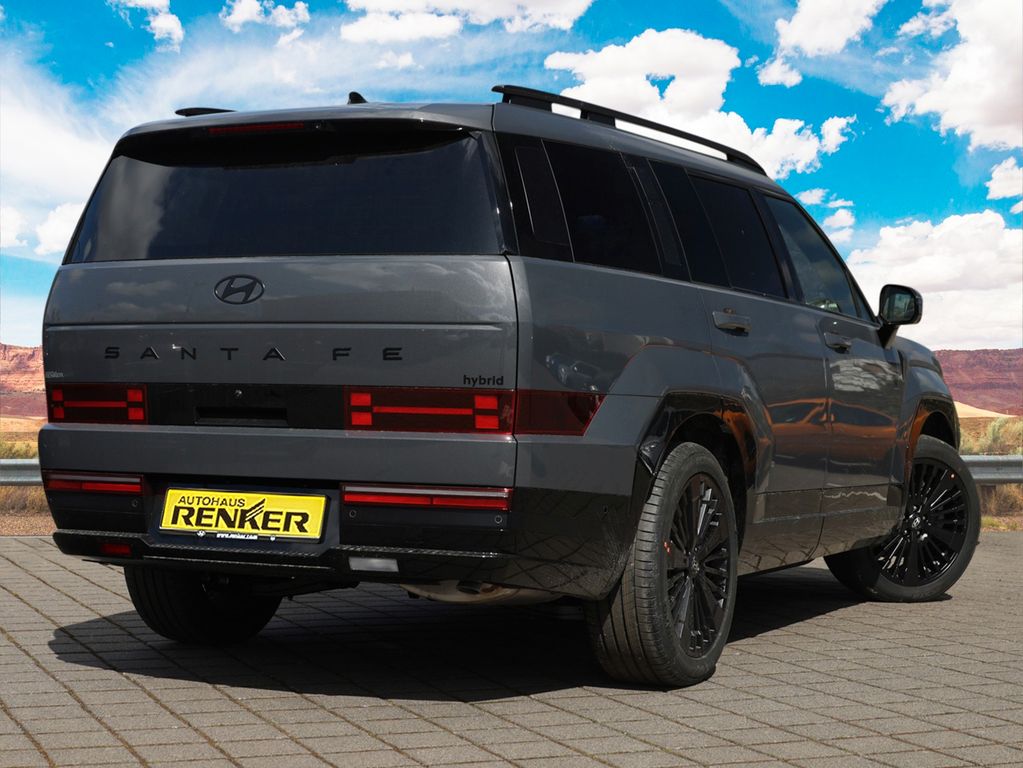Dieser Santa Fe in der exklusiven Blackline-Ausstattung bietet alles, was das Herz begehrt: Der effiziente Hybridantrieb (176 KW / 239 PS) verbindet souveräne Kraft mit Sparsamkeit.Exklusives Interieur: Die Nappa-Leder-Sitze vorn bieten Sitzheizung, Belüftung und Relax-Funktion – perfekt für Langstrecken. Ambiente-Beleuchtung, Dachhimmel in Wildleder-Optik und edle Kunstleder-Details schaffen eine luxuriöse Atmosphäre. Akustikglas sorgt für beeindruckende Ruhe im Innenraum.HighTech komplett: Das 12,25-Zoll-Navisystem mit BOSE-Sound, Apple CarPlay/Android Auto und DAB+ ist Ihr digitales Kommandozentrum. Das digitale Panorama-Cockpit liefert alle Infos auf einen Blick. Praktisch: UV-C-Sterilisationsfach, 230V-Steckdose und USB-C.Rundum sicher: Die Blackline glänzt mit einer Armada an Assistenzsystemen: Autobahnassistent 2.0, Totwinkel-Assistent mit Monitor, Around-View-Kamera, Remote Parklenkassistent und City-Notbremsfunktion vorne & hinten. Insassenalarm, Aufmerksamkeits-Assistent und 7 Airbags (inkl. Mittelairbag) schützen, was Ihnen lieb ist.Komfort pur: Elektrische Heckklappe, Niveauregulierung, 2-Zonen-Klima, beheizbares Lenkrad und Privacy Glass machen jeden Weg zum Genuss. Die LED-Scheinwerfer und die edlen schwarzen Applikationen an Schürzen & Seitenschutzleisten unterstreichen den exklusiven Blackline-Auftritt.Erleben Sie diese Technologievielfalt bei einer Probefahrt!