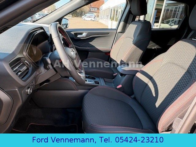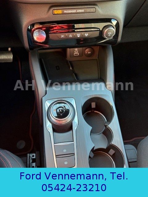 Scheinwerfer LED , Ambiente-Beleuchtung vorn (LED), Antischlupfregelung (ASR), Audio-Navigationssystem Ford mit AppLink, Außenspiegel elektr. anklappbar, Außenspiegel elektr. verstell- und heizbar, Body-Styling-Paket, Bordcomputer, Brillenfach in Dachhimmel / Dachkonsole integriert, Dachhimmel Stoff, dunkel, Dachreling schwarz, Dachspoiler Wagenfarbe, Doppelendrohr Auspuffanlage, Eco-Anzeige für verbrauchsoptimiertes Fahren (EcoCoach), Fahrassistenz-System: Notbrems-Assistent, Fahrassistenz-System: Post-Collision-System, Fahrassistenz-System: Pre-Collision-System, Fahrassistenz-System: Spurhalteassistent, Fensterheber elektrisch vorn + hinten mit Komfortschließung, FordPass Connect inkl. eCall, Fußmatten ST-Design, Gepäckraumabdeckung / Rollo, Heckleuchten LED, Induktionsladeschale für mobile Endgeräte, Innenspiegel mit Abblendautomatik, Intelligent Protection System (IPS), Isofix-Aufnahmen für Kindersitz, Karosserie: 5-türig, Klimaautomatik 2-Zonen, Kombiinstrument Digitalanzeige 12,3 Zoll, Lenkrad (Sport/Leder, ST), Lenksäule (Lenkrad) höhen-/längsverstellbar, LM-Felgen, Modellpflege, Motor 1,5 Ltr. - 136 kW EcoBoost KAT (1497 ccm), My Key (2. Fahrzeugschlüssel programmierbar), Off-Road Multi-Meter-Anzeigen inkl. Neigungswinkel, Kompass, Parkbremse elektrisch mit Auto-Hold-Funktion, Parkpilotsystem vorn und hinten, Radstand 2710 mm, Reifen-Reparaturkit, Reifendruck-Kontrollsystem, Rückfahrkamera, Rücksitzlehne geteilt, Rücksitzlehne klappbar, Schadstoffarm nach Abgasnorm Euro 6d, Scheibenrahmen schwarz, Scheinwerfer mit Ausschaltverzögerung, Scheinwerfer-Assistent mit Tag-/Nachtsensor, Sitz vorn links verstellbar (8-fach), Sitz vorn rechts verstellbar (8-fach), Sitzheizung vorn, Sonnenblende links mit Spiegel (beleuchtet), Sonnenblende rechts mit Spiegel (beleuchtet), Sport-Fahrwerk, Sportsitze, Start/Stop-Anlage