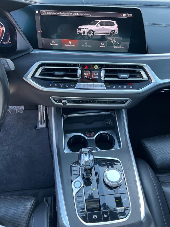 3.Sitzreihe, Aerodynamik-Paket M-Technic, Airbag Fahrer-/Beifahrerseite, Ambiente-Beleuchtung, Anhänger-Stabilisierungs-Programm (ASL), Ausstattungs-Paket: Connected Teaser, Außenspiegel elektr. anklappbar, alle Spiegel mit Abblendautomatik, Außenspiegel-Paket (erweitert), Bedienelemente galvanisiert, BMW Display-Key, BMW Live Cockpit Professional, Bremsanlage: M Sportbremsen (Bremssättel lackiert), Dachhimmel Alcantara / Anthrazit, Dachreling Hochglanz Shadow-Line, Diebstahlsicherung für Räder (Felgenschlösser), Dynamische Tractions Control (DTC), Einstiegsleisten mit Schriftzug BMW (beleuchtet), Fahrassistenz-System: Active Guard (Bremsassistent), Fahrassistenz-System: Active Guard Plus (Spurhalteassistent, Frontkollisionswarnung), Fahrassistenz-System: Aufmerksamkeits-Assistent, Fahrassistenz-System: BMW Gestiksteuerung, Fahrassistenz-System: Driving Assistant, Fahrassistenz-System: Fahrerlebnisschalter, Fahrassistenz-System: Rückfahr-Assistent, Fußmatten Velours, Gepäckraum-Paket, Harnstofftank (SCR): 22 Ltr., Head-up-Display, Heckklappe zweiteilig, Heckleuchten LED, HiFi-Lautsprechersystem, Induktionsladeschale für Smartphone (Wireless Charging), Innenspiegel rahmenlos, Instrumententafel Sensatec, Isofix-Aufnahmen für Kindersitz an Rücksitz, Karosserie: 5-türig, Knieairbag Beifahrerseite, Knieairbag Fahrerseite, Kopf-Airbag-System hinten, Kopf-Airbag-System vorn, Lenkrad (Sport/Leder M-Technic) mit Multifunktion, Lenksäule (Lenkrad) elektr. verstellbar und Fahrerairbag, LM-Felgen, Luftauslass (Air Breather) Chrom, Luftfeder mit Niveauregelung, M Sport, Mild-Hybrid 250 kW (Motor 3,0 Ltr. - 250 kW Diesel), Mittelarmlehne hinten, Park-Distance-Control (PDC) vorn und hinten, Parkbremse elektrisch, Personalisierungssystem (Personal Profile), Radstand 3105 mm, Reifendruck-Kontrollsystem, Rücksitzlehne geteilt/klappbar (40:20:40), Schadstoffarm nach Abgasnorm Euro 6d, Scheibenwaschdüsen heizbar, Seitenairbag vorn, Service-System: Apple CarPlay Information (Vorbereitung), Service-System: Concierge Services, Service-System: ConnectedDrive Services, Service-System: Gesetzlicher Notruf, Service-System: Intelligenter Notruf inkl. TeleServices, Service-System: Real Time Traffic Information (RTTI), Service-System: Remote 3D View, Service-System: Remote Services, Sicherheitssystem Active Protection, Sitzausstattung: 7-Sitzer, Sitzbezug / Polsterung: Leder Vernasca, Soft-Close-Automatik für Türen, Soft-Close-Automatik für Türen und Kofferraum / Heckklappe, Sonderlackierung Uni, Start/Stop-Anlage (Funktion), Steckdose (12V-Anschluß) in Mittelkonsole und Koffer-/Laderaum (4-fach), USB-Schnittstelle, Verglasung Akustikglas, Warndreieck