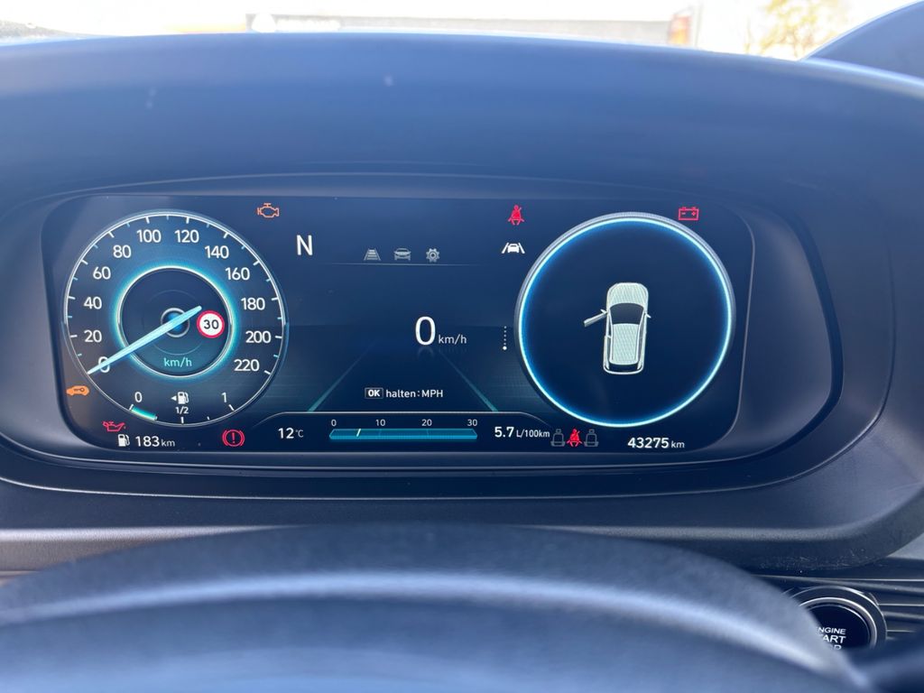 6 Lautsprecher, Ablagetasche an Vordersitzlehnen, Airbag Beifahrerseite, Airbag Beifahrerseite abschaltbar, Airbag Fahrerseite, Aktives Bremslicht (ESS), Ambiente-Beleuchtung, Audiosystem: Radio RDS, Außenspiegel elektr. anklappbar, Außenspiegel elektr. verstell- und heizbar, beide, Außenspiegel lackiert, Blinkleuchte in Außenspiegel integriert, Bordcomputer, Bremsassistent, Dachspoiler, Digital Cockpit (Instrumentenanzeige Digital), Einparkhilfe hinten, Einschaltautomatik für Fahrlicht / Lichtsensor, Elektr. Bremskraftverteilung, Elektron. Stabilitätskontrolle (ESC) mit Bremsassistent, Fahrassistenz-System: aktiver Spurhalteassistent (LKAS, Lane Keep Assist System), Fahrassistenz-System: Aufmerksamkeits-Assistent, Fahrassistenz-System: Autonome Notbremsfunktion inkl. Frontkollisionswarnung (FCA), Fahrassistenz-System: Berganfahrhilfe, Fahrassistenz-System: Fahrprofilauswahl (Drive Mode), Fahrassistenz-System: Fernlichtassistent, Fahrassistenz-System: Insassenalarm (Rear Occopant Alert, ROA), Fahrassistenz-System: Multikollisionsbremse (Multi Collision Brake), Fahrassistenz-System: Sicherheitssystem mit automatischem Notruf (ERA GLONASS / eCall), Fahrassistenz-System: Verkehrszeichenerkennung, erweitert (Geschwindigkeits-Regel-/Begrenzeranlage), Fensterheber elektrisch hinten, Freisprecheinrichtung Bluetooth, Gegenlenkunterstützung (Vehicle Stability Management, VSM), Gepäck-/Laderaumleuchte, Gepäckraumabdeckung / Rollo, Getränkehalter vorn, Gurtstraffer, Heckscheibe heizbar, Induktionsladeschale für Smartphone, Isofix-Aufnahmen für Kindersitz, Karosserie: 5-türig, Kopf-Airbag-System, Kopfstützen hinten verstellbar, Kühlergrill schwarz (mattlackiert), Lenkrad (4-Speichen), Lenksäule (Lenkrad) höhenverstellbar, Lenksäule (Lenkrad) längsverstellbar, Leseleuchte, LM-Felgen, Motor 1,0 Ltr. - 74 kW TGDI KAT, Motorhaubenisolierung, Otto-Partikelfilter (OPF), Radioempfang digital (DAB+), Radstand 2580 mm, Reifen-Reparaturkit, Reifendruck-Kontrollsystem, Rückfahrkamera, Rücksitzlehne geteilt/klappbar, Schadstoffarm nach Abgasnorm Euro 6d, Schalt-/Wählhebelgriff Leder, Seitenairbag vorn, Sicherheitsgurte vorn höhenverstellbar, Sitz vorn links höhenverstellbar, Sitzbezug / Polsterung: Stoff, Sonnenblenden mit Spiegel (beleuchtet), Start/Stop-Anlage, Steckdose (12V-Anschluß) vorn, Türgriffe außen Wagenfarbe, Türgriffe innen lackiert, Unterfahrschutz hinten, USB-Anschluss + AUX-IN-Anschluss, USB-Anschluss hinten, Verglasung getönt, Warnanlage für Sicherheitsgurte, Fahrer-/Beifahrerseite, Wireless SmartLink (Apple CarPlay)