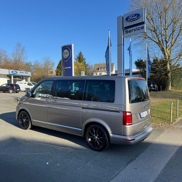 Abdeckung Schiebetürleiste, Airbag Beifahrer abschaltbar, Airbag Fahrer-/Beifahrerseite, Armaturentafel Komfort, Ausstattungs-Paket Licht + Sicht, Außenspiegel konvex, links, Außenspiegel konvex, rechts, Außenspiegel und Türgriffe außen in Wagenfarbe, Außenspiegelfuß schwarz hochglänzend, Bodenbelag im Fahrerhaus: Teppich, Bodenbelag: Teppich verstärkt, Chrom-Paket, Chromleisten Stoßfänger vorn, seitlich und Heckklappe unten, Doppeltonfanfare, Dynamik-Fahrwerk, Fahrassistenz-System: Bremsassistent (HBA), Fahrassistenz-System: Multikollisionsbremse (Multi Collision Brake), Fahrassistenz-System: Müdigkeitserkennungs-Sensor, Fahrwerk 17", Fenster im Lade-/FG-Raum: - feststehend, vorn und hinten links, Fenster im Lade-/FG-Raum: - feststehend, vorn und hinten rechts, Funkschlüssel (2) klappbar, Fußmatten Fahrerhaus: Velours, Haltegriffe A-Säulen, Handschuhfach abschließbar, Heckklappe mit Verglasung, Heckscheibe heizbar, mit Wischanlage, Innenbeleuchtung Multivan Komfort plus, Innenleuchten im Fahrerhaus: Leseleuchten vorn (2), Innenleuchten im Lade-/FG-Raum: Trittstufenleuchten, Innenraumfilter: Pollenfilter, Karosserie/Aufbau: Bus, Kindersicherung an den Schiebetüren, Klimaautomatik Climatronic (Fahrerhaus + Lade-/Fahrgastraum), Kühlergrill schwarz lackiert, mit Chromleisten, Ladekanten-/ Trittstufenabdeckungen in Edelstahl, Motor 2,0 Ltr. - 146 kW TDI, Multifunktionsanzeige Premium (Farbdisplay), Multimedia-Schnittstelle USB, Radstand 3000 mm, Reifenkontroll-Anzeige, Schadstoffarm nach Abgasnorm Euro 6d-TEMP, Scheinwerfer und Heckleuchten LED, Schiebetür Lade-/Fahrgastraum rechts, Schiebetüren Lade-/Fahrgastraum links/rechts, elektr. betätigt, Sitzbezug / Polsterung: Alcantara, Sitze im Fahrerhaus: Beifahrersitz Komfort, Sitze im Fahrerhaus: Fahrer- und Beifahrersitz heizbar, Sitze im Fahrerhaus: Fahrer- und Beifahrersitz höhenverstellbar, Sitze im Fahrerhaus: Fahrersitz Komfort, Sitze im Fahrerhaus: Lendenwirbelstützen Fahrer- und Beifahrersitz, Sitze im Lade-/FG-Raum: 1.Reihe, 2 Drehsitze, Sitze im Lade-/FG-Raum: 2.Reihe, 3er-Sitzbank, Sonnenblenden mit Spiegel (beleuchtet), Sonnenschutzrollo im Fahrgastraum, Start/Stop-Anlage Motor, Steckdose (12V-Anschluß) im Fahrerhaus, Stoßfänger in Wagenfarbe, Türablagekasten vorn, Verglasung hinten abgedunkelt, Verkleidung im Lade-/FG-Raum: Kunstleder, Wärmeschutzverglasung, Zentralverriegelung mit Fernbedienung, Safesicherung und Innenbetätigung, Zuheizer, Zul. Gesamtgewicht 3,00 t