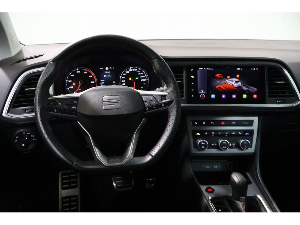 Innenraumlicht-Paket LED, Ambiente-Beleuchtung LED, Fußraumbeleuchtung vorn LED, Scheinwerfer Voll-LED, Leuchtweitenregelung automatisch, Bluetooth-Schnittstelle mit Freisprecheinrichtung integriert, Bluetooth Audio-Streaming, SEAT Media-System Plus, Audiosystem mit Touchscreen-Farbdisplay, Radioempfang digital (DAB+), USB-Schnittstelle vorn (2-fach, Typ C), Mobile Online Dienste Seat Connect, Fahrassistenz-System: Fahrprofilauswahl (SEAT Drive Profile), Progressivlenkung, Modellpflege, Einstiegsleisten beleuchtet, Außenspiegel elektr. verstell-, heiz- und anklappbar mit Spiegelabsenkung, Außenspiegel grau, Dachreling, Blinkleuchten LED in Außenspiegel integriert, Nebelscheinwerfer LED mit Abbiegelicht, Heckleuchten LED mit dynamischem Blinklicht, 3. Bremsleuchte, Tagfahrlicht LED, Heckspoiler Wagenfarbe, Stoßfänger FR-Design, Wärmeschutzverglasung, Seitenscheiben hinten und Heckscheibe abgedunkelt, Notrufsystem, USB-Ladeanschlüsse (2-fach, Typ C) für 2.Sitzreihe, Bordcomputer, Reifenkontroll-Anzeige, Kopf-Airbag-System, Pedale Aluminium-Design, Knieairbag Fahrerseite, Airbag Fahrer-/Beifahrerseite, Seitenairbag, Airbag Beifahrerseite abschaltbar, Mittelkonsole vorn mit Mittelarmlehne, Becherhalter, Ablagebox und Luftdüsen hinten, Mittelarmlehne hinten, Gepäckraumabdeckung / Rollo, Klimaanlage Climatronic 2-Zonen, Sitz vorn links höhenverstellbar, Sitz vorn rechts höhenverstellbar, Ablagetasche an Vordersitzlehnen, Lendenwirbelstütze Sitz vorn links, verstellbar, Lendenwirbelstütze Sitz vorn rechts, verstellbar, Rücksitzlehne geteilt/klappbar (1/3-2/3), Fensterheber elektrisch vorn + hinten mit Komfortschaltung, Zentralverriegelung mit Fernbedienung, Schließ-/Startsystem Kessy, Kofferraumbeleuchtung, Handschuhfach beleuchtet, Sonnenblende links mit Spiegel (beleuchtet), Sonnenblende rechts mit Spiegel (beleuchtet), Wegfahrsperre (elektronisch), Doppeltonhorn, Steckdose (12V-Anschluß) vorn, Verzurrösen Koffer-/Laderaum, Schalt-/Wählhebelgriff Leder, Isofix-Aufnahmen für Kindersitz, Brillenfach, Stau-/Ablagefach unter Sitz vorn links, Anti-Blockier-System (ABS), Parkbremse elektrisch mit Auto-Hold-Funktion, Fahrassistenz-System: Umfeldbeobachtungssystem (Front assist) mit City-Notbremsfunktion, Fahrassistenz-System: Müdigkeitserkennung, Reifen-Reparaturset, Servolenkung elektronisch gesteuert (Servotronic), Elektron. Querdifferentialsperre (XDS), Elektron. Stabilitätskontrolle (ESC), Antriebs-Schlupfregelung (ASR), Fahrassistenz-System: Berganfahr-Assistent (Hill-Holder), Schadstoffarm nach Abgasnorm Euro 6d, Otto-Partikelfilter (OPF), Karosserie: 5-türig, Antriebsart: Allradantrieb, Radstand 2630 mm, Getriebe 7-Gang - Doppelkupplungsgetriebe DSG.