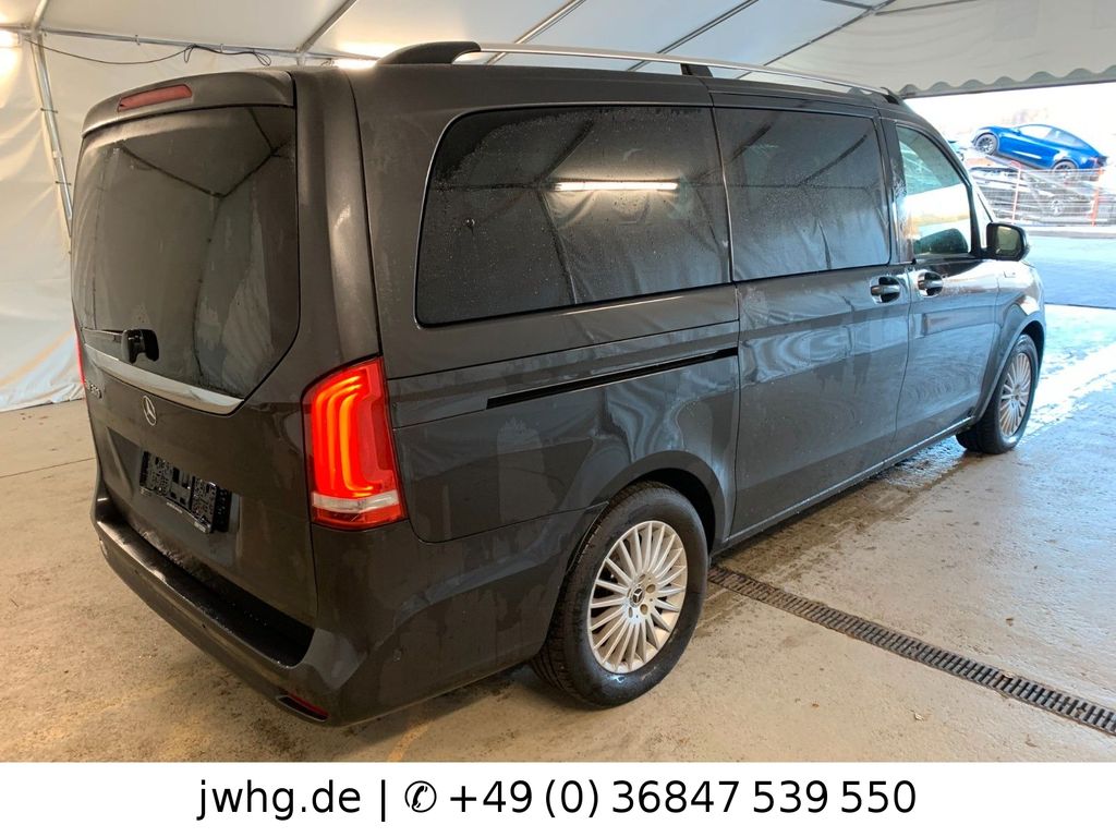 3. Bremsleuchte, Adaptives Bremslicht, Airbag Beifahrerseite, Airbag Fahrerseite, Akustischer Umfeldschutz (Außensound), Anfahrhilfe (Berganfahr-Assistent), Anzeige für Waschwasserstand, Armlehnen Fahrgastraum, Außenspiegel elektr. verstell- und heizbar, beide, Außenspiegel mit integrierter Blinkleuchte, Außentemperaturanzeige, Bodenbelag: Teppich im Fahrerraum, DAB-Tuner (Radioempfang digital), Einschaltautomatik für Fahrlicht, Einstiegsgriff hinten, Einstiegsleuchten, Elektromotor 150 kW (cont. 70 kW), EQV 300,Verkehrs-Informations-System Live Traffic, Fahrassistenz-System: Verkehrszeichenerkennung, Fenster für hintere Türen / Heckklappe mit Wisch-/Waschanlage, Fenster im Lade-/FG-Raum: - feststehend, vorn links, Fenster im Lade-/FG-Raum: - feststehend, vorn rechts, Feststellbremse elektrisch, Feststeller Schiebetür (Aktiv), Fußraumbeleuchtung vorn, Getriebe für Elektrofahrzeug, Haltegriffe im Fond, Handschuhfach abschließbar, Hold-Funktion, Holzfussboden im Laderaum mit Teppich, HV-Batterie 90 kWh, Innenausstattung: Zierteile Klavierlack-Optik, Karosserie/Aufbau: Bus, Kindersicherung, Kombiinstrument mit Farbdisplay, Komfortbeleuchtung im Fahrgast-/Laderaum, Kommunikationsmodul Mercedes me connect (Internetbasierende Dienste), Kopf-Airbag-System (Windowbag), Kopf-Schulter-Airbag (Thoraxbag) Fahrer-/Beifahrerseite, Ladekabel (5,0 m) mit Typ 2-Stecker (20 A, Mode 3),teckdose (12V-Anschluß) im Lade-/Fahrgastraum, Stoßfänger / Stoßf.-Leiste seitlich + Griff an Heckklappe lackiert, Umfeldleuchte in Heckklappe, Vlies-Batterie 70 Ah, Vorbereitung Navigationssystem (für Multimediasystem MBUX), Vorklimatisierung, Warmluftkanal zum Lade-/Fahrgastraum, Wärmeschutzverglasung, Zul. Gesamtgewicht 3,50 t, Regensensor
