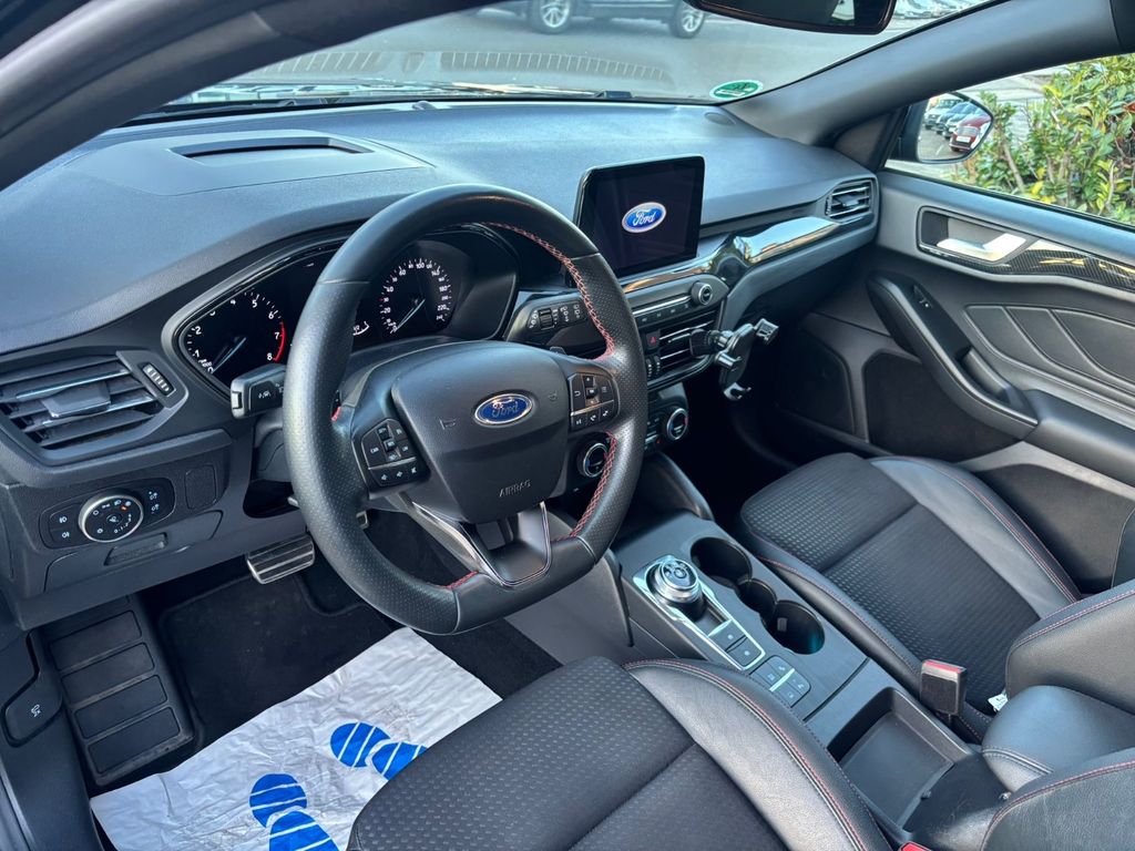 Airbag Beifahrerseite abschaltbar, Antischlupfregelung (ASR), Audio-Navigationssystem Ford mit AppLink, Außenspiegel elektr. anklappbar, Außenspiegel elektr. verstell- und heizbar, Blinkleuchte in Außenspiegel integriert, Body-Styling-Paket, Bord-/Verbrauchscomputer, Dachhimmel Stoff, dunkel, Dachreling schwarz, Dachspoiler Wagenfarbe, Dimmer Instrumentenbeleuchtung, Doppelendrohr Auspuffanlage, Elektr. Bremskraftverteilung (EBD), Fahrassistenz-System: Berganfahr-Assistent (Hill-Holder), Fahrassistenz-System: Notbrems-Assistent, Fahrassistenz-System: Post-Collision-System, Fahrassistenz-System: Pre-Collision-System, Fahrassistenz-System: Spurhalteassistent, Farbdisplay für Bordcomputer, Fensterheber elektrisch vorn + hinten mit Komfortschließung, FordPass Connect inkl. eCall, Fußmatten Velours - vorn, Gepäckraumabdeckung / Rollo, Getriebe Automatik - Typ: 8F24 (8-Stufen), Innenraumfilter: Staub- und Pollenfilter, Intelligent Protection System (IPS), Intelligenter Geschwindigkeits-Begrenzer, Isofix-Aufnahmen für Kindersitz, Karosserie: 5-türig, Kopfstützen hinten mechan. verstellbar (3 Stück), Kopfstützen vorn 4-fach verstellbar, Laderaumboden verstellbar, Lenkrad (Sport/Leder, ST), Lenkrad mit Schaltwippen, Lenksäule (Lenkrad) höhen-/längsverstellbar, LM-Felgen, Motor 1,5 Ltr. - 110 kW EcoBoost KAT (1496 ccm), My Key (2. Fahrzeugschlüssel programmierbar), Nebelscheinwerfer LED, Otto-Partikelfilter (OPF), Parkbremse elektrisch mit Auto-Hold-Funktion, Parkpilotsystem vorn und hinten, Pedale Aluminium, Reifendruck-Kontrollsystem, Reserverad als Notrad, Rücksitzlehne geteilt/klappbar (60:40), Schadstoffarm nach Abgasnorm Euro 6d-TEMP, Schalt-/Wählhebelgriff Aluminium, Schaltpunktanzeige, Scheinwerfer mit abgedunkelten Hintergrund, Scheinwerfer-Assistent mit Tag-/Nachtsensor, Sonnenblende links mit Spiegel, Sonnenblende rechts mit Spiegel, Sport-Fahrwerk, Sportsitze vorn, Start/Stop-Anlage, Steckdose (12V-Anschluß) im Koffer-/Laderaum, Verglasung getönt, Warnanlage für Sicherheitsgurte hinten, Warnanlage für Sicherheitsgurte vorn, Zylinderabschaltung