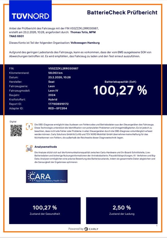 Angaben zum Hersteller: SEAT Deutschland GmbH, Cupra, Max-Planck-Str. 3-5, 64331 Weiterstadt, 06150-1079991, service(at)cupraofficial.de
