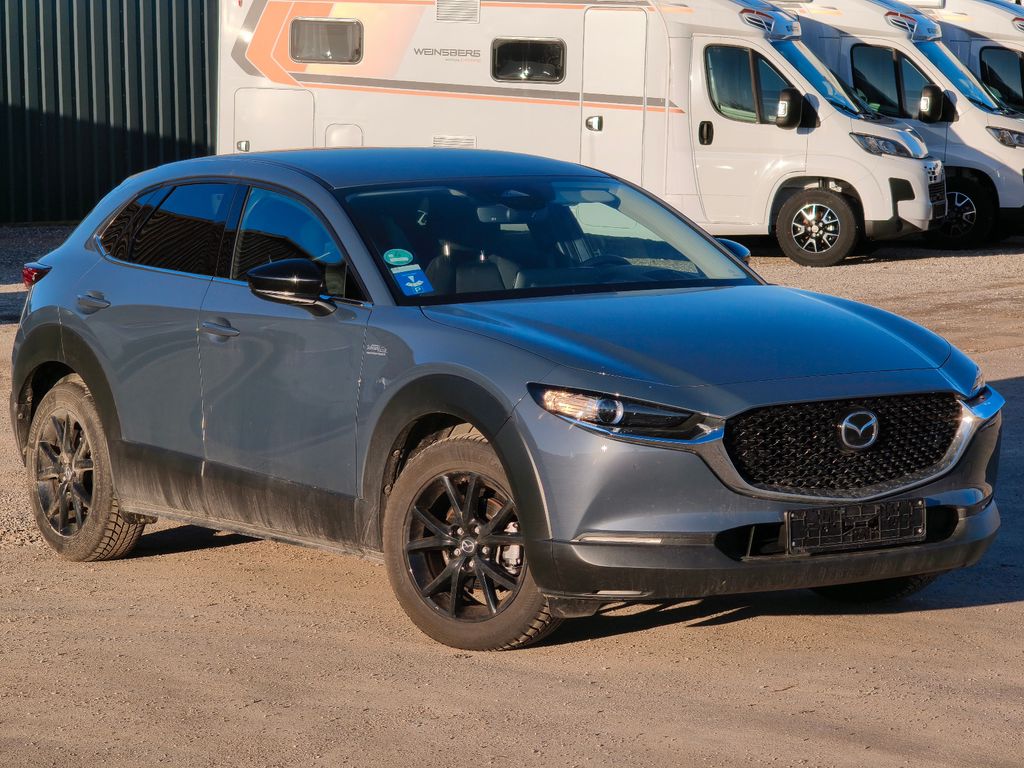 3. Bremsleuchte, 8 Lautsprecher, Abgasanlage 2-flutig, Active Info-Display (Instrumentenanzeige digital), Airbag Beifahrerseite, Airbag Fahrerseite, Airbagsystem Beifahrerseite abschaltbar, Audiobedienung am Lenkrad, Automatik-Sicherheitsgurte vorn und hinten, Außenspiegel elektr. anklappbar, Außenspiegel elektr. verstell- und heizbar, beide, Außenspiegel schwarz hochglänzend, Blinkleuchte in Außenspiegel integriert, Brillenfach in Dachhimmel / Dachkonsole integriert, Colorverglasung, Dachhimmel grau, Einparkhilfe hinten, Einparkhilfe vorn, Einschaltautomatik für Fahrlicht, Elektr. Bremskraftverteilung (EBD), Elektron. Traktionskontrolle, Erweiterte Smartphone-Integration (Apple CarPlay und Android Auto), Fahrassistenz-System: Auspark-Assistent, Fahrassistenz-System: Berganfahrhilfe (HLA), Fahrassistenz-System: City-Notbremsfunktion (SCBS), Fahrassistenz-System: Fahrdynamikregelung G-Vectoring Control, Fahrassistenz-System: Fernlichtassistent (HBC), Fahrassistenz-System: Müdigkeitserkennungs-Sensor (DAA), Fahrassistenz-System: Spurhalteassistent, Fahrassistenz-System: Spurwechselassistent Plus (BSM), Fahrassistenz-System: Stauassistent, Fahrassistenz-System: Verkehrszeichenerkennung (TSR), Fensterheber elektr. vorn und hinten mit Komfortschaltung, Fensterzierleisten verchromt, Freisprecheinrichtung mit Voice-Control und Bluetooth, Gepäckraumabdeckung / Rollo, Gurtstraffer vorn, Head-up-Display Advanced, Heckklappe/-Deckel elektr. betätigt (öffnen + schliessen), Heckleuchten LED, Induktionsladeschale für Smartphone (Wireless Charging), Innenausstattung: Applikationen schwarz, Innenspiegel mit Abblendautomatik, Isofix-Aufnahmen für Kindersitz, Karosserie: 5-türig, Klimaautomatik, Knieairbag Fahrerseite, Kopf-Schulter-Airbag vorn und hinten, Laderaumboden variabel (Smart Cargo System), Lenkrad (Sport/Leder, 3-Speichen), Lenkrad heizbar, Lenkrad mit Multifunktion, Lenksäule (Lenkrad) höhenverstellbar, Lenksäule (Lenkrad) längsverstellbar, Lichtassistent (Coming Home, Leaving Home), LM-Felgen, Make-up-Spiegel beleuchtet, Mild-Hybrid 137 kW SPCCI (Motor 2,0 Ltr. - 137 kW), Multi-Commander, Navigationssystem: SD-Karten-Navigation, Notbrems-Warnblinkautomatik (ESS), Notrufsystem, Otto-Partikelfilter (OPF), Parkbremse elektrisch, Radioempfang digital (DAB), Radstand 2655 mm, Reifen-Reparaturkit, Reifendruck-Kontrollsystem, Rückfahrkamera, Rücksitz-Klappsystem (Karakuri-System), Rücksitzlehne geteilt/klappbar, Schadstoffarm nach Abgasnorm Euro 6d, Schalt-/Wählhebelgriff Leder, Scheinwerfer LED mit adaptiver Lichtverteilung (ALH), Seitenairbag vorn, Seitenscheiben hinten und Heckscheibe abgedunkelt, Sitz vorn links höhen-/neigungsverstellbar, Sitz vorn rechts höhenverstellbar, Sitzbezug / Polsterung: Stoff, Sitzheizung vorn, Sprachsteuerung, erweiterter Umfang, Start-Stop-Knopf, Start/Stop-Anlage (i-Stop), Säulenverkleidung Hochglanz-Finish, Touchscreen-Farbdisplay (10,25 Zoll), Türgriffe außen Wagenfarbe, USB-Schnittstelle, Wegfahrsperre (elektronisch)