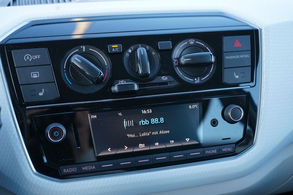 Airbag Beifahrerseite abschaltbar, Airbag Fahrer-/Beifahrerseite, Antriebs-Schlupfregelung (ASR), Bremsassistent, Dachhimmel Stoff, grau, Doppeltonhorn, Drehzahlmesser, Einstiegshilfe Easy-Entry mit Memoryfunktion links, Frontscheibe Verbundglas getönt, Funkschlüssel (2) klappbar, Gepäckraumabdeckung / Rollo, Gepäckraumbeleuchtung, Gepäckraumboden höhenverstellbar, Handschuhfach mit Klappe, Heckscheibe heizbar, Heckscheibenwischer, Innenspiegel abblendbar, Isofix-Aufnahmen für Kindersitz an Rücksitz, Karosserie: 4-türig, Kennzeichenbeleuchtung LED, Kopfstützen hinten, Lautsprecher (2), Lenksäule (Lenkrad) höhenverstellbar, Modellpflege, Motor 1,0 Ltr. - 55 kW, Motor-Schleppmoment-Regulator (MSR), Multifunktionsanzeige Plus, Multimedia-Schnittstelle USB, Nebelschlussleuchte, Radstand 2420 mm, Radvollabdeckungen / Radzierblenden, Reifen-Reparaturkit (Tire Mobility Set), Reifenkontroll-Anzeige, Rücksitzbank umklappbar, Rücksitzlehne geteilt, Schadstoffarm nach Abgasnorm Euro 6, Scheibenwischer mit Intervallschaltung, Seitenairbag vorn mit Kopf-Airbag-Einheit, Sitzbezug / Polsterung: Stoff, Sitze vorn höhenverstellbar, Sonnenblenden mit Spiegel, Stahlfelgen 5x14, Start/Stop-Anlage, Stoßfänger lackiert, Türgriffe außen Wagenfarbe, Türgriffe innen verchromt, Verbandkasten und Warndreieck, Wärmeschutzverglasung grün getönt