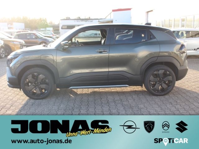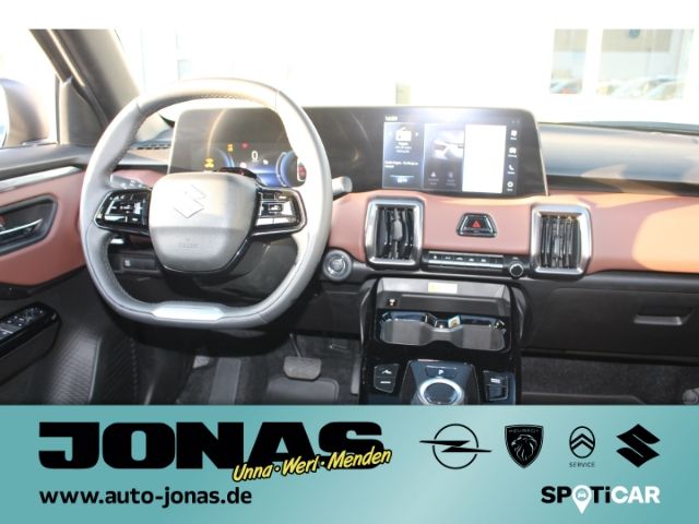 - Weiteres: - Audio-System (inkl.DAB+) m. Smartphone-Anbindung inkl. Navigation BluetoothFreisprecheinr. u. Lenkradbed. - Infinity Premium Sound System - 10,1 Zoll Display für Multimedia und Fahrzeugeinstellungen - 6 Lautsprecher - Subwoofer - USB-A Anschluss (vorn und hinten) - USB-C Ladeanschluss (vorn und hinten) - Smartphone kabellos laden - SUZUKI CONNECT - Klimaautomatik mit Pollenfilter - Warmluftführung nach hinten - Fensterheber vorn und hinten elektrisch - Glasdach mit Sonnenblende - Adaptiver Tempomat (ACC) mit Berücksichtigung erkannter Geschwindigkeitsbegrenzungen - Einstellbares Fahrpedal bezüglich der Rekuperation - Innenspiegel automatisch abblendend - Sitzheizung vorn - Fahrersitz höhenverstellbar - Fahrersitz elektrisch verstellbar (10-Wege inkl. Lordosenstütze) - Rücksitzlehne im Verhältnis 40:20:40, separat umklappbar - Rücksitzlehne neigungsverstellbar - Rücksitze verschiebbar - Lenkrad höhen- und längsverstellbar (Ledernachbildung) - Lenkradheizung - Mittelkonsole mit Ablagefach und Getränkehaltern - Mittelarmlehne mit Ablagefach vorn - Doppelter Kofferraumboden - Ambientebeleuchtung (12 Farben) - Konfigurierbares volldigitales Kombiinstrument (10,25 Zoll Display) - 12V- Anschluß in Mittelkonsole - Ladekabel Mode 3 (Typ 2) - Keyless Start (schlüsselloses Einsteigen und Starten mit Starterknopf) - Außenspiegel elektrisch verstell- und anklappbar mit integrierten Seitenblinkern - Außenspiegel beheizbar - LED-Scheinwerfer (Projektor Design) - Lichtsensor - Adaptiver Fernlichtassistent - Automatische Leuchtweitenregulierung - Nebelscheinwerfer - LED-Tagfahrlicht - Guide me Light - Ultraviolett (UV) absorbierende Scheiben (Frontscheibe und vordere Seitenscheiben) - Infrarot (IR) absorbierende und geräuschdämmende Frontscheibe - Privacy Glass (Heckscheibe und hintere Seitenscheiben abgedunkelt) - Regensensor - Teilbeheizte Frontscheibe (Ablagefläche der Scheibenwischer u. entlang der A-Säule auf Fahrerseite) - Wärmepumpe - Außenspiegel in Dachfarbe - Dachkantenspoiler - 19-Alufelgen (Bereifung 225/50 R19) mit Aerodynamik Radabdeckung - Dual-Sensor gestützte aktive Bremsunterstützung (DSBS) mit Frontalaufprall- u. Querverkehrserkennung - Müdigkeitserkennung - Spurhaltewarnsystem mit Lenkeingriff und Spurhaltefunktion - Verkehrszeichenerkennung mit optischer u. akustischer Warnung bei Überschreitung der Geschwindigkeit - Toter Winkel-Warnsystem - Ausparkassistent (RCTA-Warnung beim rückwärtigen Ausparken vor querendem Verkehr hinter dem Fahrzg.) - Alarmanlage - Fahrmoduseinstellungen (ECO - NORMAL - SPORT) - Berganfahrhilfe - 360 Grad Kamera - Einparkhilfe vorn und hinten mit akustischer und optischer Anzeige - eCall (automatischer Notruf) - Unfalldatenspeicher - Airbags vorn für Fahrer und Beifahrer - Knieairbag vorn für Fahrer - Beifahrerairbag vorn, abschaltbar - Seitenairbags vorn - Vorhangairbags vorn und hinten - Gurtstraffer und Gurtkraftbegrenzer vorn und auf den äußeren Fondsitzen - Sicherheitsgurte vorn höhenverstellbar - Warnsystem für nicht angelegte Sicherheitsgurte vorn und hinten - Reifendruck-Kontrollanzeige - ISOFIX-Kindersitzbefestigungen auf den beiden äußeren Fondsitzen - Vorbereitung für Alkoholtestsystem
