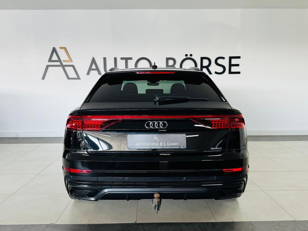 Bluetooth Audio-Streaming,Digitaler Tacho,Digitales Radio,Fahrtauglich,Komplett-Fahrzeug,Scheckheft,Verkehrszeichenerkennung,Fahrzeug-Garantie,Elektronische Dämpfer Control,Spurhalteassistent,Außentemperaturanzeige,el. Parkbremse,Innenspiegel automatisch abblendbar,Kopfstützen im Fonds,LED-Scheinwerfer,Reifendruckkontrolle,Spiegel automatisch abblendbar,Tagfahrlicht,Beifahrerairbag,Fenster-/Kopfairbags im Fond,Fenster-/Kopfairbags vorne,Seitenairbags im Fond,Seitenairbags vorne,Farbmonitor für Navigationssystem,Schaltwippen,Aufbereitet,Außenspiegel anklappbar,Außenspiegel beheizbar,Außenspiegel elektr.,Außenspiegel elektr. anklappbar,Frontscheibe beheizbar,Keyless Entry,Keyless Start,Komfortsitze,Lederlenkrad,Lenkrad beheizbar,Mittelarmlehne,Sitz links/rechts orthopaedisch,Sitzheizung hinten,Soundsystem,USB Anschluss,Vordersitze höhenverstellbar,Telefonvorbereitung,Apple CarPlay,Volldigitales Kombiinstrument,4 Einstiegstüren,Gepäckraumabdeckung,Heckklappe elektrisch,Scheinwerferreinigungsanlage,Sportlenkrad,weitere Ausstattungen vorhanden,Gebrauchtfahrzeug,Stauassistent- Audi Q8 Quattro 3,0 TDI S line