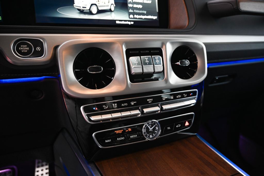 Inside, the car features ventilated and massaging seats, Burmester surround sound, and a high overall equipment level—well above standard G-Class trim.