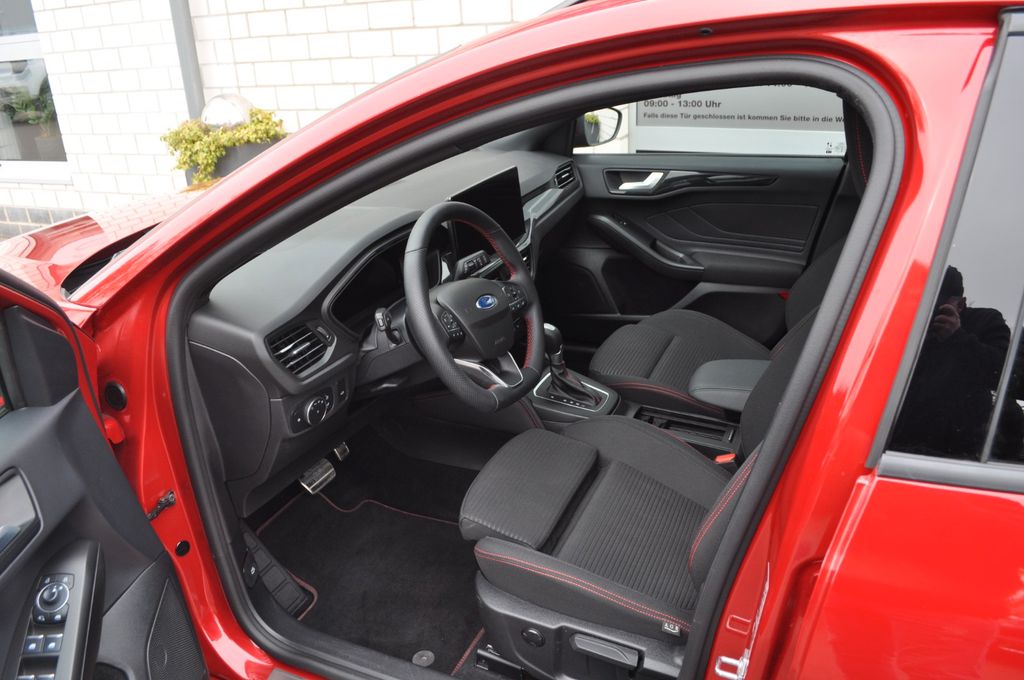Airbag Beifahrerseite abschaltbar, Ambiente-Beleuchtung vorn (LED), Antischlupfregelung (ASR), Audio-Navigationssystem Ford SD (mit Ford SYNC 4 und Touchscreen-Farbdisplay), Außenspiegel elektr. anklappbar, Außenspiegel elektr. verstell- und heizbar, Blinkleuchte in Außenspiegel integriert, Bodenleuchte im Außenspiegel, Body-Styling-Paket, Bord-/Verbrauchscomputer, Dachhimmel Stoff, dunkel, Dachreling schwarz, Dimmer Instrumentenbeleuchtung, Doppelendrohr Auspuffanlage, Durchladeeinrichtung (Mittelarmlehne hinten), Elektr. Bremskraftverteilung (EBD), Fahrassistenz-System: Berganfahr-Assistent (Hill-Holder), Fahrassistenz-System: Notbrems-Assistent, Fahrassistenz-System: Post-Collision-System, Fahrassistenz-System: Pre-Collision-System, Fahrassistenz-System: Spurhalteassistent, Farbdisplay (8 Zoll), Farbdisplay für Bordcomputer, Fensterheber elektrisch vorn + hinten mit Komfortschließung, Fußmatten Velours mit Ziernähte, Gepäckraumabdeckung / Rollo, Getriebe 7-Gang - Doppelkupplungsgetriebe, Induktionsladeschale für mobile Endgeräte, Innenraumfilter: Staub- und Pollenfilter, Innenspiegel mit Abblendautomatik, Intelligent Protection System (IPS), Intelligenter Geschwindigkeits-Begrenzer, Isofix-Aufnahmen für Kindersitz, Karosserie: 5-türig, Kindersicherung elektrisch, Klimaautomatik 2-Zonen, Kombiinstrument Digitalanzeige 12,3 Zoll, Kopfstützen hinten mechan. verstellbar (3 Stück), Kopfstützen vorn 4-fach verstellbar, Lenkrad (Sport/Leder, ST), Lenksäule (Lenkrad) höhen-/längsverstellbar, LM-Felgen, Mild-Hybrid 114 kW (Motor 1,0 Ltr. - 114 kW EcoBoost), Mittelarmlehne hinten, Mittelkonsole Premium, Modellpflege, My Key (2. Fahrzeugschlüssel programmierbar), Nebelscheinwerfer LED, Parkbremse elektrisch mit Auto-Hold-Funktion, Parkpilotsystem vorn und hinten, Reifen-Reparaturkit, Reifendruck-Kontrollsystem, Rücksitzlehne geteilt/klappbar (60:40), Schadstoffarm nach Abgasnorm Euro 6e, Schalt-/Wählhebelgriff Aluminium, Schalt-/Wählhebelgriff Leder, Schaltpunktanzeige, Scheinwerfer mit abgedunkelten Hintergrund, Scheinwerfer mit Ausschaltverzögerung, Scheinwerfer-Assistent mit Tag-/Nachtsensor, Sitz vorn links höhenverstellbar, Sitz vorn rechts höhenverstellbar, Sonnenblende links mit Spiegel (beleuchtet), Sonnenblende rechts mit Spiegel (beleuchtet), Sport-Fahrwerk, Sportsitze vorn, Start/Stop-Anlage, Steckdose (12V-Anschluß) im Koffer-/Laderaum, Verglasung getönt, Verglasung hinten abgedunkelt (Privacy Glass), Warnanlage für Sicherheitsgurte hinten, Warnanlage für Sicherheitsgurte vorn