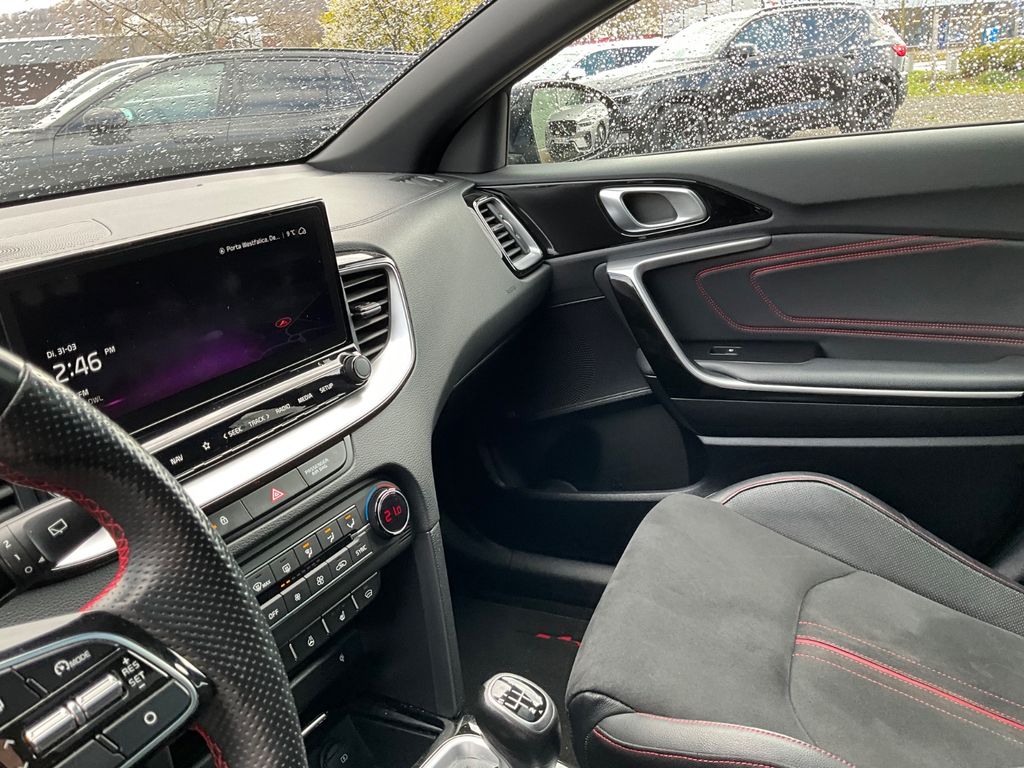 Airbag Fahrer-/Beifahrerseite, Antriebs-Schlupfregelung (TCS), Audiosystem: Radio mit RDS / MP3 inkl. TFT-Display, Auspuffanlage mit Klappensteuerung, Ausstattung GT, Außenspiegel elektr. anklappbar, Außenspiegel elektr. verstellbar, beide, Außenspiegel heizbar, Außenspiegel Wagenfarbe, Bi-LED-Scheinwerfer, Blinkleuchte in Außenspiegel integriert, Bordcomputer, Bremsassistent, Bremssättel Rot, Chromeinfassung Seitenfenster, DAB-Tuner (Radioempfang digital), Dachantenne im Haifischflossen-Design, Dachhimmel schwarz, Dachspoiler, Einparkhilfe hinten, Einschaltautomatik für Fahrlicht, Fahrassistenz-System: aktiver Spurhalteassistent (LKAS, Lane Keep Assist System), Fahrassistenz-System: Berganfahr-Assistent, Fahrassistenz-System: Fahrprofilauswahl (Drive Mode), Fahrassistenz-System: Fernlichtassistent, Fahrassistenz-System: Frontkollisionswarnung mit Fußgängererkennung, Fahrassistenz-System: Intelligentes Parksystem mit Einpark-Assistent (Parallel- und Quereinparken und Parallelausparken), Fahrassistenz-System: Müdigkeitserkennungs-Sensor (Driver Attention Warning, DAW), Fahrassistenz-System: Querverkehrs-Assistent (Rear Cross Traffic Collision Warning, RCCW), Fahrassistenz-System: Spurwechselassistent, Fensterheber elektr. mit Einklemmschutz vorn, Fensterheber elektrisch vorn + hinten, Freisprecheinrichtung Bluetooth, Gepäcknetz / Tasche an Vordersitzlehne, Gepäckraumabdeckung / Rollo, Getränkehalter, Heckklappenöffnung elektr., Heckleuchten LED, Heckscheibe heizbar, Heckscheibenwischer, Induktionsladeschale für Smartphone, Innenspiegel mit Abblendautomatik, Instrumentenbeleuchtung Supervision, Isofix-Aufnahmen für Kindersitz, Karosserie: 5-türig, Klimaautomatik 2-Zonen, Kombiinstrument digital, Kopf-Airbag-System, Kühlergrill Klavierlack, Kühlergrill schwarz (glanzlackiert), Laderaumboden variabel, Lendenwirbelstütze Sitz vorn links und rechts, elektr. verstellbar, Lenkrad heizbar, LM-Felgen, Mittelarmlehne vorn verschiebbar, Motor 1,6 Ltr. - 150 kW TGDI KAT, Multifunktion für Lenkrad, Otto-Partikelfilter (OPF), Parkbremse elektrisch, Pedale Aluminium, Reifen-Reparaturset, Reifendruck-Kontrollsystem, Rückfahrkamera, Schadstoffarm nach Abgasnorm Euro 6d-TEMP, Schalt-/Wählhebelgriff Leder, Scheibenwaschdüsen heizbar, Seitenairbag, Sicherheitsgurte vorn höhenverstellbar, Sitz vorn links höhenverstellbar, Sitz vorn rechts mech. höhenverstellbar, Sitzbezug / Polsterung: Leder mit Wildleder, Sitzheizung vorn, Smartphone Schnittstelle (Apple CarPlay & Android Auto), Sonnenblenden mit Spiegel (beleuchtet), Sportsitze, Start/Stop-Anlage (ISG), Steckdose (12V-Anschluß) in Mittelkonsole, Stoßfänger Wagenfarbe, Touchscreen-Farbdisplay (7,0 Zoll), Türgriffe außen Wagenfarbe, Türgriffe innen Chrom-Optik, USB-Anschluss + AUX-IN-Anschluss, USB-Schnellladeanschluß Mittelkonsole, Verglasung hinten abgedunkelt (Privacy Glass), Warnanlage für Sicherheitsgurte hinten, Warnanlage für Sicherheitsgurte, Fahrer-/Beifahrerseite, Wärmeschutzverglasung, Innenspiegel automatisch abblendend, Regensensor, Sitzheizung vorn