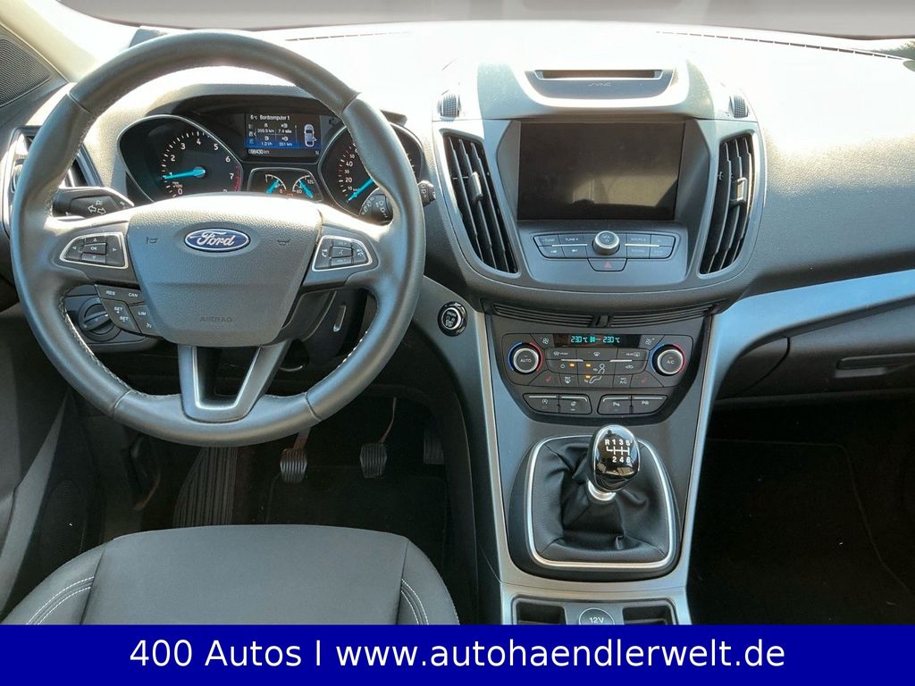 Antischlupfregelung (ASR), Audio-Navigationssystem Ford SD (mit Ford SYNC), Audiobedienung am Lenkrad, Außenspiegel elektr. verstell- und heizbar, Bordcomputer, Brillenfach in Dachhimmel / Dachkonsole integriert, Chromeinfassung Seitenscheiben, Dachreling (Aluminium), Dachspoiler Wagenfarbe, Dimmer Instrumentenbeleuchtung, Easy-Driver-Paket, Elektr. Bremskraftverteilung (EBD), Fahrassistenz-System: Berganfahr-Assistent (Hill-Holder), Fahrassistenz-System: Notbrems-Assistent, Fensterheber elektrisch vorn + hinten mit Komfortschließung, Fußraumleuchte vorn, Innenausstattung: Aluminium-Dekor, Innenraumfilter: Staub- und Pollenfilter, Intelligent Protection System (IPS), Isofix-Aufnahmen für Kindersitz, Karosserie: 5-türig, Klimaautomatik 2-Zonen, Kühlergrill silber, Lenkrad mit Schaltwippen, Lenksäule (Lenkrad) höhen-/längsverstellbar, Leuchtweitenregelung, Modellpflege, Motor 1,5 Ltr. - 110 kW EcoBoost KAT, My Key (2. Fahrzeugschlüssel programmierbar), Otto-Partikelfilter (OPF), Parkbremse elektrisch, Radstand 2690 mm, Reifen-Reparaturkit, Reifendruck-Kontrollsystem, Rücksitzlehne geteilt/klappbar (60:40), Schadstoffarm nach Abgasnorm Euro 6, Schalt-/Wählhebelgriff Leder, Schaltpunktanzeige, Sitz vorn links höhenverstellbar, Sonnenblende links mit Spiegel (beleuchtet), Sonnenblende rechts mit Spiegel (beleuchtet), Sportsitze vorn, Start/Stop-Anlage, Steckdose (12V-Anschluß) im Koffer-/Laderaum, Türgriffe außen Wagenfarbe, Unterfahrschutz, Unterfahrschutz hinten, Verglasung getönt, Warnanlage für Sicherheitsgurte hinten, Zierleisten unterhalb Seitenscheiben Chrom-Dekor