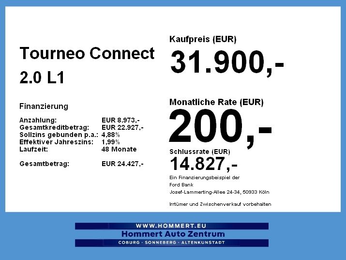 Es handelt sich hier um ein Neufahrzeug Ford Tourneo Connect Titanium L1 2.0 EcoBlue Automatik mit einer TOP AUSSTATTUNG