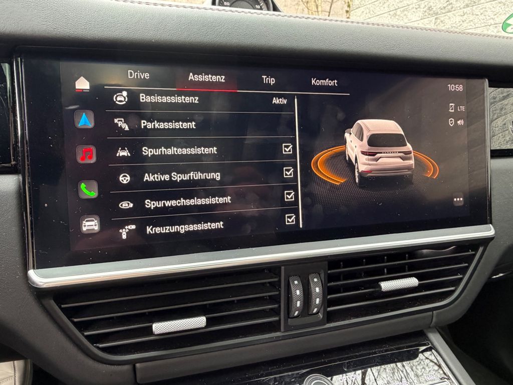 Sonderausstattung:Adaptive Sportsitze inkl. Sitzverstellung 18-Wege und Memory-Paket, Ambiente-Beleuchtung, Außen-/Innenspiegel mit Abblendautomatik, Außenspiegel schwarz lackiert, Dachhimmel Alcantara, Dachreling, Fahrassistenz-System: Park-Assistent vorn und hinten inkl. Rückfahrkamera und Surround View, Fahrassistenz-System: Porsche InnoDrive inkl. Abstandsregeltempomat, Fahrassistenz-System: Spurwechselassistent, Fußmatten, Head-up-Display, Home-Link (Garagentoröffner), Induktionsladeschale für Smartphone (Wireless Charging), Interieur-Paket: schwarz (Hochglanz), Ionisator zur Luftreinigung, Klimaautomatik 4-Zonen, Komfortzugang (Schlüssellose Türentriegelung), LM-Felgen vorn/hinten: 10x22 / 11,5x22 (Cayenne Sport Classic Rad, Wagenfarbe, glanzgedreht), Matrix-LED-Scheinwerfer, abgedunkelt, inkl. Porsche Dynamic Light System Plus (PDLS+), Panorama-Schiebedach zweiteilig vorn elektrisch, Radioempfang digital (DAB+), Schriftzug Porsche lackiert, Servolenkung Plus (geschwindigkeitsabhängig), Sitzheizung vorn, Soft Close Türen, Sound-System BOSE, Sport-Chrono-Paket, Sport-Design-Paket schwarz, Hochglanz, Standheizung, Verglasung hinten abgedunkelt (Privacyverglasung), Vierradlenkung