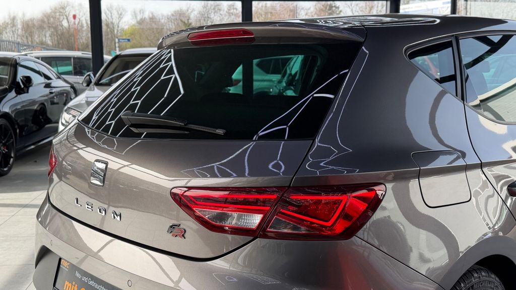 8 Lautsprecher, Ablagetasche an Vordersitzlehnen, Airbag Beifahrerseite abschaltbar, Airbag Fahrer-/Beifahrerseite, Antriebs-Schlupfregelung (ASR), Außenspiegel elektr. anklappbar, Außenspiegel elektr. verstell-, heiz- und anklappbar, beide, Außenspiegel mit Spiegelabsenkung, rechts, Außenspiegel und Türgriffe außen in Wagenfarbe, Außentemperaturanzeige, Blinkleuchten LED in Außenspiegel integriert, Bordcomputer, Bremsassistent, Elektron. Differentialsperre (EDS), Fahrassistenz-System: Berganfahr-Assistent (Hill-Holder), Fahrassistenz-System: Berganfahr-Assistent und Elektron. Differentialsperre, Fahrassistenz-System: Fahrprofilauswahl (SEAT Drive Profile), Fensterheber elektrisch hinten, Handschuhfach beleuchtet, Heckleuchten LED, Innenausstattung: Chrom-Applikationen, Isofix-Aufnahmen für Kindersitz, Karosserie: 5-türig, Klimaanlage Climatronic 2-Zonen, Knieairbag Fahrerseite, Kopf-Airbag-System, Kopfstützen hinten (3-fach), Kopfstützen vorn verstellbar, Lendenwirbelstütze Sitz vorn links, verstellbar, Lendenwirbelstütze Sitz vorn rechts, verstellbar, Lenkrad (Sport/Leder), LM-Felgen, Mittelkonsole vorn mit Mittelarmlehne, Becherhalter, Ablagebox und Luftdüsen hinten, Motor 1,4 Ltr. - 110 kW 16V TSI ACT, Reifen-Reparaturset, Reifenkontroll-Anzeige, Rücksitzlehne geteilt/klappbar (1/3-2/3), Schadstoffarm nach Abgasnorm Euro 6, Schalt-/Wählhebelgriff Leder, Seitenairbag, Seitenscheiben hinten und Heckscheibe abgedunkelt, Sitz vorn links höhenverstellbar, Sitz vorn rechts höhenverstellbar, Sonnenblende links mit Spiegel (beleuchtet), Sonnenblende rechts mit Spiegel (beleuchtet), Sport-Fahrwerk FR / Cupra, Sportsitze vorn, Sprachsteuerungs-System, Start/Stop-Anlage, Stau-/Ablagefach unter Sitze vorn, Steckdose (12V-Anschluß) vorn, Stoßfänger lackiert, Wärmeschutzverglasung, Seitenscheiben hinten und Heckscheibe abgedunkelt