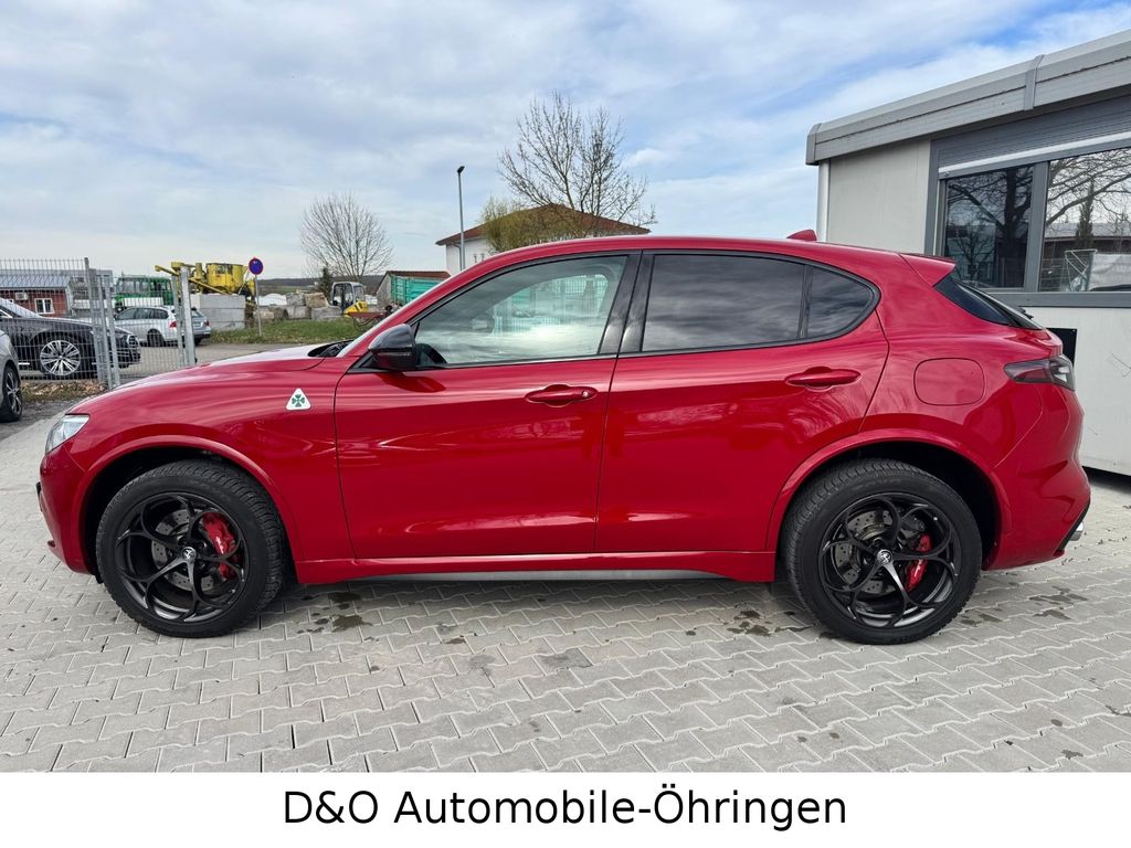 Airbag Beifahrerseite abschaltbar, Airbag Fahrer-/Beifahrerseite, Aktive Giermomentkontrolle (AYC), Anhänger-Stabilisierungs-Programm (TSA), Antriebs-Schlupfregelung (ASR), Antriebsart: Allradantrieb, Armaturenbrett und Türverkleidungen in Leder, Auspuffanlage 2-flutig, Außenspiegel Anthrazit, Außenspiegel elektr. verstell-, heiz- und anklappbar, Außenspiegel mit Abblendautomatik, Außenspiegel schwarz, glänzend, Blinkleuchten LED in Außenspiegel integriert, Bremsanlage: Brembo, Bremsassistent (HBA / EBA), Bremslicht mit Notfallfunktion (Einschaltautomatik Warnblinkanlage), Einstiegsleiste mit Schriftzug (Logo), Elektron. Bremskraftverteiler (EBD), Elektron. Stabilitätskontrolle (ESC), Elektron. Traktionskontrolle, Fahrassistenz-System: aktiver Spurhalteassistent (LKA), Fahrassistenz-System: Alfa Romeo D.N.A.-Fahrdynamik-System, Fahrassistenz-System: Autonomer Notbrems-Assistent (AEB), Fahrassistenz-System: Berganfahrhilfe (Hill-Holder), Fahrassistenz-System: Fernlichtassistent, Fahrassistenz-System: Frontkollisionswarnung (FCW), Fahrassistenz-System: Spurverlassenswarnung (LDW), Fahrwerk Aktiv mit elektronischer Stoßdämpferregelung (Active Suspension), Fensterheber elektrisch vorn + hinten, Fensterrahmen schwarz, Frontgrill Anthrazit, Frontscheibe infrarot-reflektierend, Fußmatten, Gepäcknetz im Koffer-/Laderaum, Getriebe Automatik - (8-Stufen), Getränkehalter, Gurtstraffer, Heckdiffusor, Heckleuchten dunkel getönt, Heckleuchten LED, Infotainment-Center mit 7" Farbdisplay, Infotainment-System: UConnect 3D Nav (Farbbildschirm 8,8"), Innenausstattung: Interieur dunkel, Dachsäule und Dachhimmel in schwarz, Innenausstattung: Interieurleisten Carbon, Innenausstattung: Rahmen der Armaturentafel und Türverkleidung in Carbon-Optik, Innenspiegel mit Abblendautomatik, Ionisator zur Luftreinigung, Isofix-Aufnahmen für Kindersitz, Karosserie: 5-türig, Keyless-Entry, Klimaautomatik 2-Zonen, Kofferraumdeckel / Heckklappe elektr. betätigt Easy-Load (öffnen + schliessen), Kopf-Airbag-System, Kopfstützen hinten, Kurvenbremskontrolle (CBC / ESBS), Lenkrad heizbar, Lenksäule (Lenkrad) verstellbar (vertikal / axial), Licht- und Regensensor, LM-Felgen, Luftdüsen im Fond, Mittelarmlehne vorn mit Ablagefach, Modellpflege, Motor 2,9 Ltr. - 375 kW V6 KAT, Motor-Schleppmoment-Regulator (MSR / EDC), Otto-Partikelfilter (OPF), Parkbremse elektrisch, Pedale Aluminium, Radnabenabdeckungen, Radstand 2818 mm, Regen-Bremsassistent (RBA), Reifen-Reparaturkit, Reifendruck-Kontrollsystem, Rückfahrkamera, Rücksitz geteilt / klappbar (Asymmetrisch), Schadstoffarm nach Abgasnorm Euro 6, Schadstoffarm nach Abgasnorm Euro 6d, Schalt-/Wählhebelgriff Aluminium, Scheibenwaschdüsen heizbar, Schienensystem im Kofferraum, Seitenairbag, Seitenschweller Wagenfarbe, Sitze vorn elektr. verstellbar (8-fach), Sitzfläche vorn neigungsverstellbar, Sitzheizung vorn, Smartphone Schnittstelle (Apple CarPlay & Android Auto), Sonnenblende links mit Spiegel (beleuchtet), Sperrdifferential (Q2), Sport-Auspuffanlage, Sport-Pedalerie, Sportsitze Leder, Start-Stop-Knopf, Start/Stop-Anlage, Steckdose (12V-Anschluß) in Mittelkonsole, Steckdose 230V im Kofferraum, Stoßfänger vorn und hinten im Quadrifoglio Design, Türgriffe außen Aluminium-Optik, Türgriffe außen mit LED-Beleuchtung, Uni-Lackierung Alfa-Rot, Unterfahrschutz hinten, Warnanlage für Sicherheitsgurte