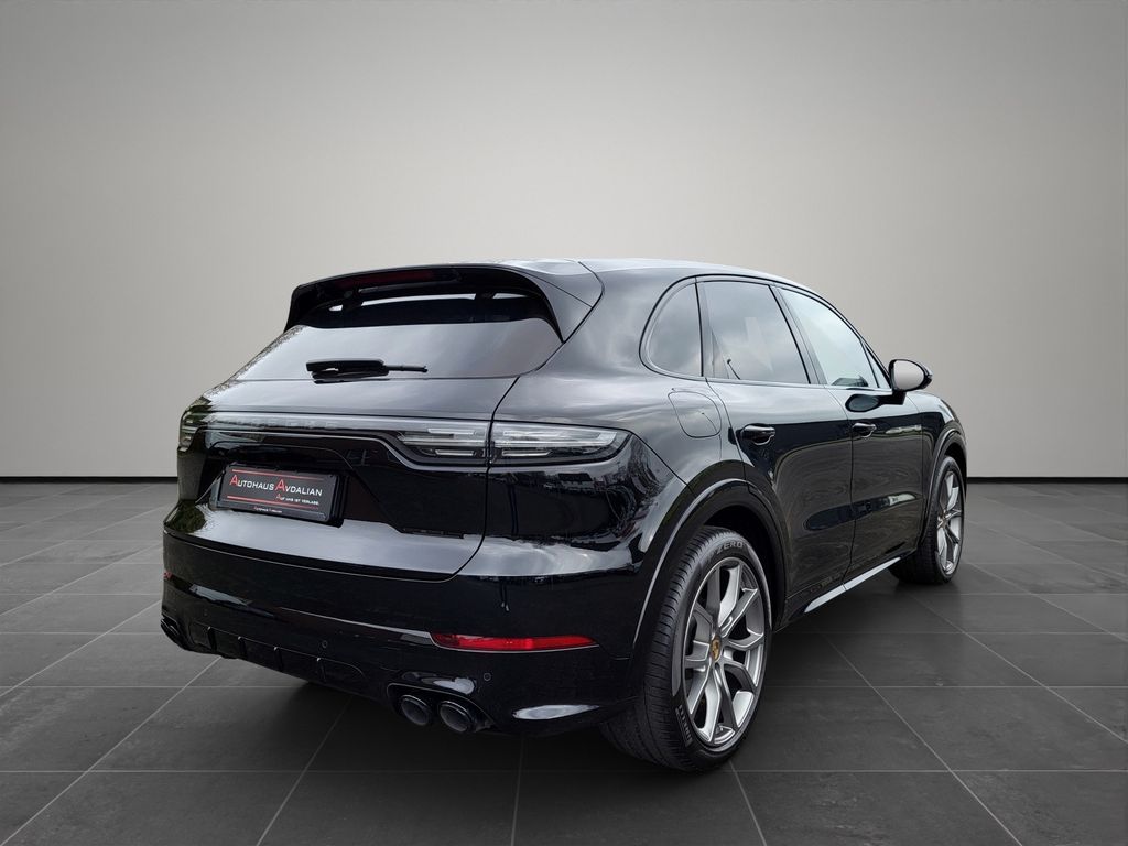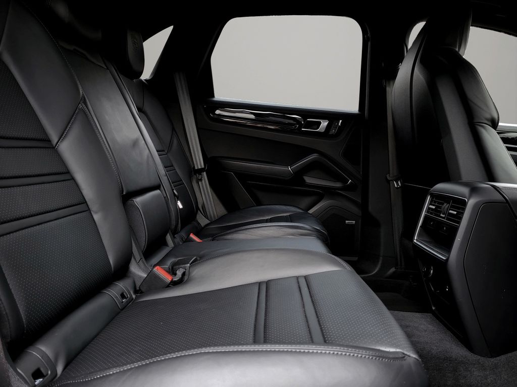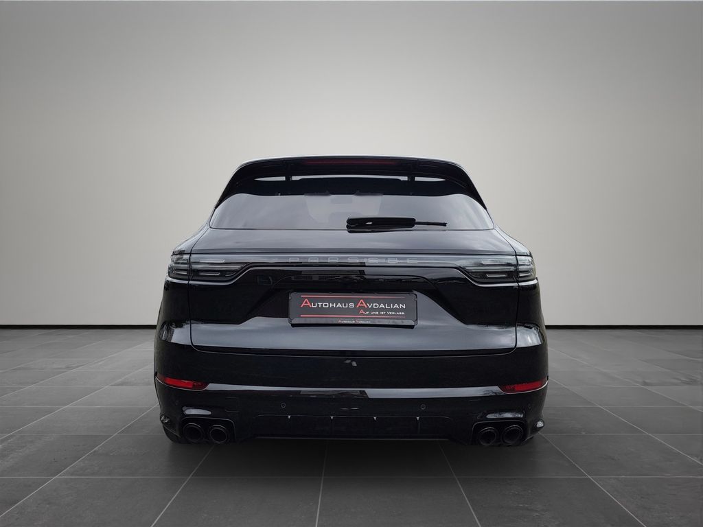 Adaptive Sportsitze inkl. Sitzverstellung 18-Wege und Memory-Paket, Adaptive Lufederung mit Niveauregulierung und Höhenverstellung inkl. Porsche Active Suspension Management (PASM), Außenspiegel schwarz lackiert, Fahrassistenz-System: Park-Assistent vorn und hinten inkl. Rückfahrkamera und Surround View, Fahrassistenz-System: Spurwechselassistent, Heckleuchten LED, abgedunkelt, Innenausstattung: Glattleder, Serienlederfarbe, Interieur-Paket: schwarz (Hochglanz), Ionisator zur Luftreinigung, Komfortzugang (Schlüssellose Türentriegelung), Kraftstofftank: 90 Ltr., Lenkrad heizbar (Zusatz-AV zu Lenkrad), LM-Felgen vorn/hinten: 9,5x21 / 11x21 (Cayenne Exclusive Design Rad, Platinum, seidenglänzend lackiert), LED-Türprojektoren "PORSCHE" Schriftzug, Radioempfang digital (DAB+), Schriftzug Porsche lackiert, Seitenairbag hinten, Sicherheitsgurte schiefergrau, Sitzbelüftung vorn, Sitzheizung vorn + hinten, Soft Close Türen, Sport-Auspuffanlage, Endrohre schwarz, Sport-Design-Paket schwarz, Hochglanz, Verglasung hinten abgedunkelt (Privacyverglasung) inkl. Wärmeschutzverglasung geräuschdämmend, Vierradlenkung