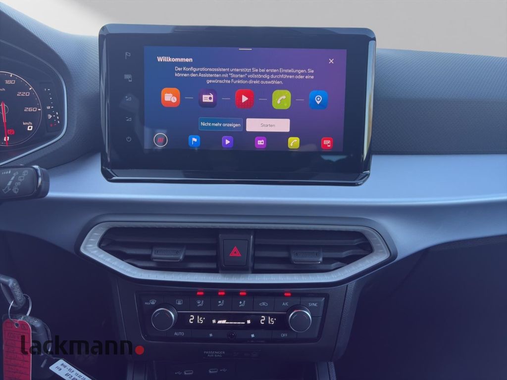 - Weiteres: Antriebs-Schlupfregelung (ASR), BORDCOMPUTER, Geschwindigkeits-Regelanlage (Tempomat), Schalt-/Wählhebelgriff Leder, Scheibenwischer mit Regensensor, Reifen-Reparaturset, Lenkrad mit Multifunktion, Heckleuchten LED, Außenspiegel elektr. verstell- und heizbar, beide, Rücksitzlehne geteilt/klappbar (1/3-2/3), Sportsitze vorn, Motor 1,0 Ltr. - 81 kW TSI, Notrufsystem, Scheinwerfer Voll-LED, Audio-Navigationssystem mit Touchscreen Farbbildschirm, Schadstoffarm nach Abgasnorm Euro 6d, USB-Schnittstelle vorn (2-fach, Typ C), Mobile Online Dienste Seat Connect, Innenraumfilter: Pollenfilter, LM-Felgen, Innenausstattung: Luftdüsen grau, Airbag Fahrer-/Beifahrerseite, Anti-Blockier-System (ABS), Tagfahrlicht LED, Fensterheber elektrisch vorn, Lenksäule (Lenkrad) höhenverstellbar, Wegfahrsperre (elektronisch), Kopf-Airbag-System, Gepäckraumabdeckung / Rollo, Licht- und Regensensor, Innenausstattung: Chrom-Applikationen, Reifenkontroll-Anzeige, Seitenairbag, Ambiente-Beleuchtung LED, Full Link (MirrorLink, Apple CarPlay und Android Auto), Metallic-Lackierung, Außenspiegel elektr. anklappbar, Außentemperaturanzeige, Ausstattungs-Paket: Pro, Beifahrerairbag abschaltbar, Berg-Anfahr-Assistent (Hill-Holder), Bluetooth Audio-Streaming, Bluetooth-Schnittstelle mit Freisprecheinrichtung, Bremsassistent, Climatronic 2-Zonen, Elektron. Differentialsperre (EDS), Elektron. Stabilitätskontrolle (ESC), Elektron. Stabilitäts-Programm, Fahrprofilauswahl (SEAT Drive Profile), Fensterheber elektrisch vorn und hinten, Geschwindigkeits-Begrenzeranlage, Heckscheibe heizbar, Heckscheibenwischer, Heckspoiler, Innenspiegel mit Abblendautomatik, Isofix-Aufnahmen für Kindersitz, Klima-Komfort-Paket, Kombiinstrument digital (virtual cockpit), Kopfstützen hinten, Lederlenkrad, Licht- und Sicht-Paket, Lichtassistent (Coming Home, Leaving Home), Müdigkeitserkennung, Multikollisionsbremse (Multi Collision Brake), Nebelscheinwerfer mit Abbiegelicht, Radioempfang digital (DAB+), Servotronic, Sitzhöhenverstellung, Sport-Fahrwerk FR / Cupra, Spurhalteassistent, Start/Stop-Anlage, Umfeldbeobachtungssystem (Front assist) mit City-Notbremsfunktion, Wärmeschutzverglasung, ZV mit Fernbedienung