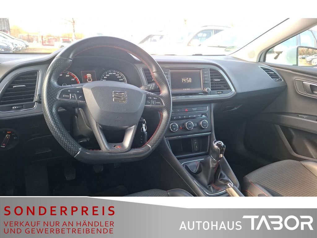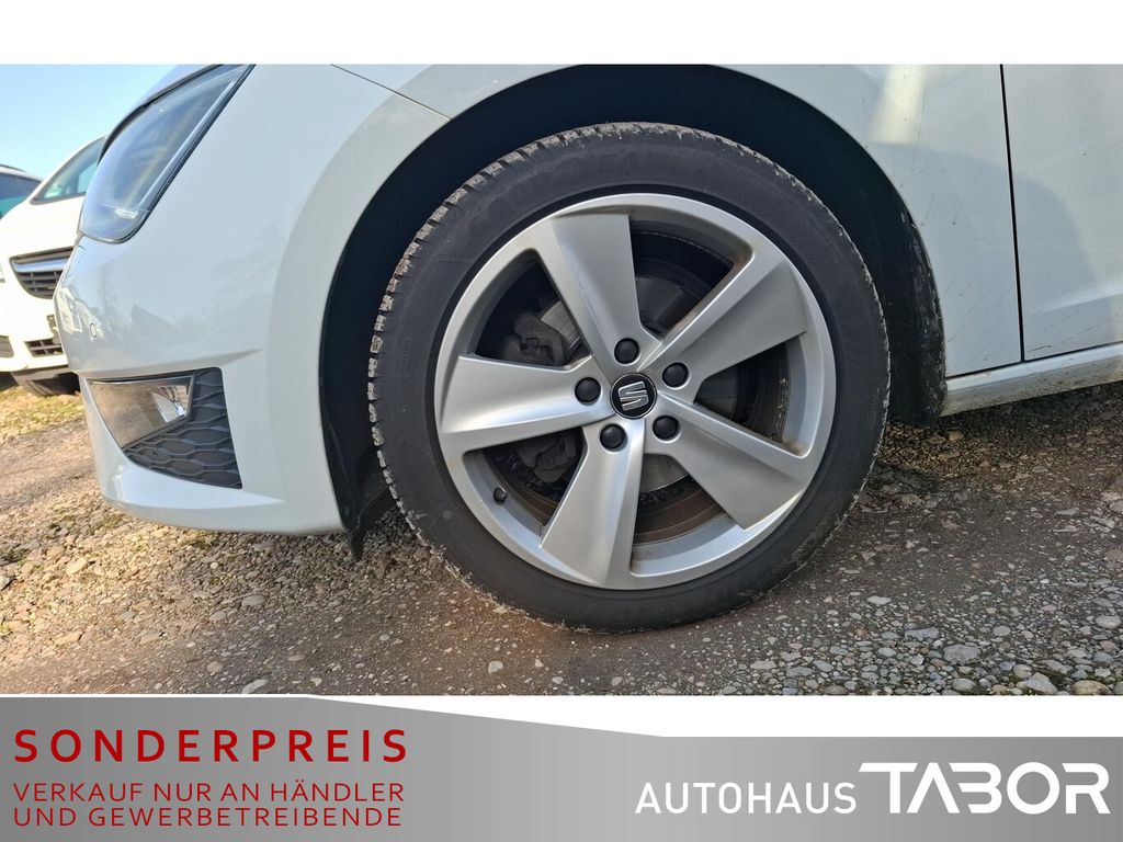 Scheinwerfer LED (Heckleuchten LED), Audio-Navigationssystem mit Touchscreen Farbbildschirm (8 Lautsprecher / Bluetooth Audio-Streaming / Sprachsteuerungs-System / Lenkrad mit Multifunktion), Metallic-Lackierung, Einparkhilfe vorn und hinten, optisch, Winter-Paket (Scheibenwaschdüsen heizbar / Sitzheizung vorn / Scheinwerfer-Reinigungsanlage (SRA)), Anhängerkupplung Vorbereitung, Gepäckraum-Abtrennung (Netz), Innenraumlicht-Paket LED, Ablage-Paket (Mittelkonsole vorn mit Mittelarmlehne, Becherhalter, Ablagebox und Luftdüsen hinten / Stau-/Ablagefach unter Sitz vorn links), Außenspiegel elektr. verstell-, heiz- und anklappbar, beide (Außenspiegel elektr. anklappbar / Außenspiegel elektr. verstell- und heizbar, beide / Außenspiegel mit Spiegelabsenkung, rechts), 3. Bremsleuchte, Ablagetasche an Vordersitzlehnen, Außenspiegel und Türgriffe außen in Wagenfarbe, Außentemperaturanzeige, Gepäckraumabdeckung / Rollo, Handschuhfach beleuchtet, Innenausstattung: Chrom-Applikationen, Karosserie: 5-türig, Kofferraumbeleuchtung, Kopfstützen hinten (3-fach), Kopfstützen vorn verstellbar, Laderaumboden variabel und herausnehmbar, Lendenwirbelstütze Sitz vorn links, verstellbar, Lendenwirbelstütze Sitz vorn rechts, verstellbar, Mittelarmlehne hinten, Motor 1,4 Ltr. - 110 kW 16V TSI ACT, Reifen-Reparaturset, Schadstoffarm nach Abgasnorm Euro 6, Schalt-/Wählhebelgriff Leder, Sitz vorn links höhenverstellbar, Sitz vorn rechts höhenverstellbar, Sonnenblende links mit Spiegel (beleuchtet), Sonnenblende rechts mit Spiegel (beleuchtet), Stau-/Ablagefach unter Sitze vorn, Steckdose (12V-Anschluß) im Koffer-/Laderaum, Steckdose (12V-Anschluß) vorn, Stoßfänger lackiert, USB-Anschluss und AUX-IN-Anschluss (CUP-Eingang), Anti-Blockier-System (ABS), Bremsassistent, Antriebs-Schlupfregelung (ASR), Elektron. Differentialsperre (EDS), Elektron. Stabilitäts-Programm (ESP), Elektron. Stabilitätskontrolle (ESC), LM-Felgen 7,5x17 (Dynamic), Sport-Fahrwerk FR / Cupra, Wegfahrsperre (elektronisch), Getriebe 6-Gang, Klimaanlage Climatronic 2-Zonen, Airbag Beifahrerseite abschaltbar, Airbag Fahrer-/Beifahrerseite, Fensterheber elektrisch hinten, Fensterheber elektrisch vorn, Isofix-Aufnahmen für Kindersitz, Knieairbag Fahrerseite, Kopf-Airbag-System, Rücksitzlehne geteilt/klappbar (1/3-2/3), Rücksitzlehnen umklappbar mit Fernentriegelung im Kofferraum, Seitenairbag, Seitenscheiben hinten und Heckscheibe abgedunkelt, Sportsitze vorn, Zentralverriegelung mit Fernbedienung, Bordcomputer, Fahrassistenz-System: Fahrprofilauswahl (SEAT Drive Profile), Dachreling silber, Wärmeschutzverglasung, Fahrassistenz-System: Berganfahr-Assistent (Hill-Holder), Fahrassistenz-System: Berganfahr-Assistent und Elektron. Differentialsperre, Geschwindigkeits-Regelanlage (Tempomat), Lenkrad (Sport/Leder), Servolenkung elektronisch gesteuert (Servotronic), Blinkleuchten LED in Außenspiegel integriert, Nebelscheinwerfer mit Abbiegelicht integriert, Tagfahrlicht, Tagfahrlicht LED, Reifenkontroll-Anzeige, Rußpartikelfilter, Start/Stop-Anlage