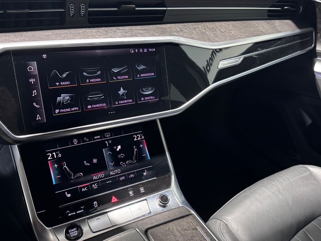 Airbag Beifahrerseite abschaltbar, Airbag Fahrer-/Beifahrerseite, Ambiente-Beleuchtung, Audi connect (Internetbasierende Dienste), Audi connect (Notruf- und Assistance-System), Audi Drive Select, Außenspiegel asphärisch, links, Außenspiegel asphärisch, rechts, Außenspiegel Wagenfarbe, Blinkleuchten LED in Außenspiegel integriert, Dachreling eloxiert, Einstiegsleisten mit Aluminiumeinlage, Fahrassistenz-System: Bremsassistent (Audi pre sense front), Fahrassistenz-System: Insassen-Schutzsystem (Audi pre sense basic), Fahrassistenz-System: Spurverlassenswarnung, Fahrer-Informations-System (FIS) mit Farbdisplay, Fondsitzanlage (3 Sitzplätze), Frontscheibe Wärmeschutzverglasung, Gepäckraumklappe elektr. betätigt (öffnen + schliessen), Glanz-Paket, Heckklappenöffnung automatisch, Heckleuchten LED, Innenausstattung: Dekoreinlagen Aluminium Fragment, Innenausstattung: Interieurelemente in Kunstleder, Isofix-Aufnahmen für Kindersitz, Karosserie: 4-türig, Kopf-Airbag-System (Sideguard), Lenksäule (Lenkrad) mech. Höhen-/Längsverstellung, Mild-Hybrid 170 kW (Motor 3,0 Ltr. - 170 kW V6 24V TDI), Mild-Hybrid-Technologie, Multi-Media-Interface MMI Basic Plus / MMI Radio Plus, Nichtraucher-Paket, Progressivlenkung, Radioempfang digital (DAB), Reifen-Reparaturkit, Reifenkontroll-Anzeige, Rücksitzlehne geteilt/klappbar (40:20:40), Schadstoffarm nach Abgasnorm Euro 6d-TEMP, Scheibenwaschdüsen heizbar, Schienensystem im Gepäckraum, SCR-System (AdBlue-Technologie), Standard-Fahrwerk, Start/Stop-Anlage, Wagenheber, Wärmeschutzverglasung (seitlich / hinten), Ambiente-Beleuchtung