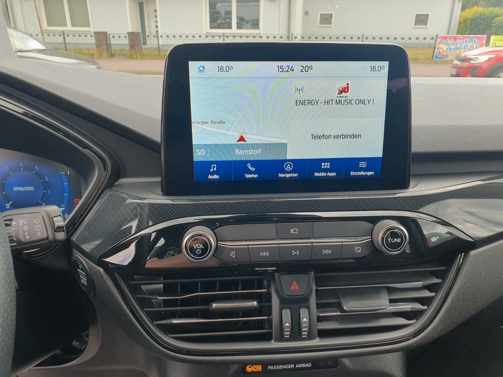 Ambiente-Beleuchtung vorn (LED), Antischlupfregelung (ASR), Audio-Navigationssystem Ford mit AppLink, Außenspiegel elektr. anklappbar, Außenspiegel elektr. verstell- und heizbar, Body-Styling-Paket, Bordcomputer, Brillenfach in Dachhimmel / Dachkonsole integriert, Dachhimmel Stoff, dunkel, Dachreling schwarz, Dachspoiler Wagenfarbe, Doppelendrohr Auspuffanlage, Eco-Anzeige für verbrauchsoptimiertes Fahren (EcoCoach), Fahrassistenz-System: Notbrems-Assistent, Fahrassistenz-System: Post-Collision-System, Fahrassistenz-System: Pre-Collision-System, Fahrassistenz-System: Spurhalteassistent, Fensterheber elektrisch vorn + hinten mit Komfortschließung, FordPass Connect inkl. eCall, Fußmatten ST-Design, Gepäckraumabdeckung / Rollo, Heckleuchten LED, Induktionsladeschale für mobile Endgeräte, Innenspiegel mit Abblendautomatik, Intelligent Protection System (IPS), Isofix-Aufnahmen für Kindersitz, Karosserie: 5-türig, Klimaautomatik 2-Zonen, Kombiinstrument Digitalanzeige 12,3 Zoll, Kopfstützen vorn 4-fach verstellbar, Lenkrad (Sport/Leder, ST), Lenksäule (Lenkrad) höhen-/längsverstellbar, LM-Felgen, Motor 1,5 Ltr. - 110 kW EcoBoost KAT (1496 ccm), My Key (2. Fahrzeugschlüssel programmierbar), Nebelscheinwerfer LED, Parkbremse elektrisch mit Auto-Hold-Funktion, Parkpilotsystem vorn und hinten, Pedale Aluminium, Radstand 2710 mm, Reifen-Reparaturkit, Reifendruck-Kontrollsystem, Rücksitzlehne geteilt, Rücksitzlehne klappbar, Schadstoffarm nach Abgasnorm Euro 6d-TEMP, Schalt-/Wählhebelgriff Aluminium, Scheibenrahmen schwarz, Scheinwerfer mit Ausschaltverzögerung, Scheinwerfer-Assistent mit Tag-/Nachtsensor, Sitz vorn links verstellbar (8-fach), Sitz vorn rechts verstellbar (8-fach), Sitzheizung vorn, Sonnenblende links mit Spiegel (beleuchtet), Sonnenblende rechts mit Spiegel (beleuchtet), Sport-Fahrwerk, Sportsitze, Start/Stop-Anlage