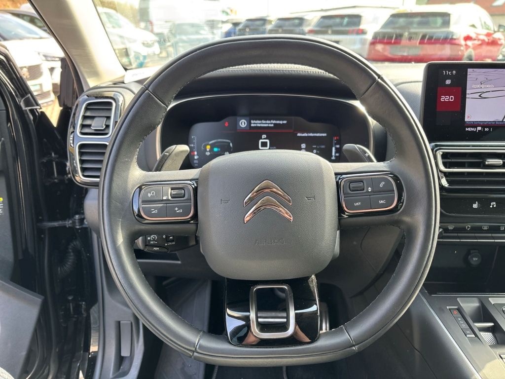 - Weiteres: BORDCOMPUTER, Reifendruck-Kontrollsystem, Scheibenwischer mit Regensensor, Einparkhilfe hinten, Isofix-Aufnahmen für Kindersitz an Rücksitz, Reifen-Reparaturkit, Seitenscheiben hinten und Heckscheibe dunkel getönt, Dachreling schwarz, LM-Felgen, Schadstoffarm nach Abgasnorm Euro 6d, Kamerasystem Vision 360 Grad, Audiosystem mit digitalem Radioempfang DAB / DAB+, Einparkhilfe vorn und hinten inkl. Rückfahrkamera mit Top Rear Vision und Parksensoren seitlich, Comfort Federung (Citroen Advanced), Sitzbezug / Polsterung: Alcantara / Kunstleder, Getriebe Automatik - Doppelkupplungsgetriebe (6-Stufen, Hybrid), Audio-Navigationssystem: Connect Nav mit digitalem Radioempfang DAB / DAB+, Sonderlackierung Perla-Nera-Schwarz Metallic, Airbag Fahrer-/Beifahrerseite, Anti-Blockier-System (ABS), Tagfahrlicht LED, Fensterheber elektrisch vorn, Seitenairbag vorn, Kopf-Airbag-System hinten, Kopf-Airbag-System, Antischlupfregelung (ASR), Otto-Partikelfilter (GPF), Aktiver Notbrems-Assistent (Active Safety Brake), aktiver Spurassistent (Lenkunterstützung), Antriebsart: Frontantrieb, Aufmerksamkeits-Assistent (Müdigkeitserkennungs-Sensor), Außenspiegel elektr. anklappbar, Beifahrerairbag abschaltbar, Drive-Assist-Paket 5, Einparkhilfe vorn und hinten, Einschaltautomatik für Fahrlicht, Elektron. Stabilitäts-Programm (ESP), Fensterheber elektrisch vorn und hinten, Fernlichtassistent, Geschwindigkeits-Begrenzeranlage, Highway Drive Assist, Innenausstattung: Ambiente ë-SERIE, Innenspiegel mit Abblendautomatik, Isofix-Aufnahmen für Kindersitz am Beifahrersitz, Keyless Entry, Klimaautomatik Fahrer-/Beifahrerseite getrennt regelbar, Kollisionswarnsystem, Komfortsitze vorn, Lederlenkrad, Lendenwirbelstütze, Mild-Hybrid 100 kW (Motor 1,2 Ltr. - 100 kW), Nebelscheinwerfer mit statischem Abbiegelicht, Notruf- und Assistance-System (CITROEN Connect), Park-Assistent inkl. autom. Einparken, Parkbremse elektrisch, Park-Paket, Pyrotechnischer Gurtstraffer, Scheibenwaschanlage vorn mit integrierten Scheibenwaschdüsen (Magic), Scheinwerfer Full-LED, Seitenscheiben Verbundglas, Sicherheits-Paket 2, Sicherheits-Paket 3, Sicherheits-Paket 4, Sitzheizung vorn, Sitzhöhenverstellung, Stop-Start-Anlage, Style-Paket Chrom Matt, Totwinkel-Assistent, Verkehrszeichenerkennung, Verkehrszeichenerkennung Plus (Geschwindigkeits-Regel-/Begrenzeranlage)