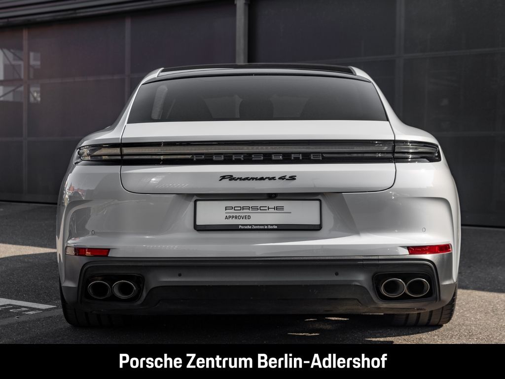 - Weiteres: Wir freuen uns über Ihr Interesse an diesem Fahrzeug! Im Angebotspreis enthalten ist eine Porsche Approved Gebrauchtwagengarantie für 12 Monate. Bei Fragen ist unser Verkaufsteam für Sie gerne unter der Telefonnummer 030/978911- 399 erreichbar. Bitte kontaktieren Sie uns auch, wenn Sie eine Besichtigung vor Ort planen. Weitere interessante Angebote finden Sie unter: www.porsche-berlin.de. Gerne nehmen wir auch Ihr aktuelles Fahrzeug in Zahlung. Irrtümer und Änderungen, sowie Zwischenverkauf vorbehalten., (3FU) Panorama Dachsystem, (KQ2) PORSCHE Schriftzug lackiert in Schwarz (hochglanz), (QJ4) Seitenscheibenleisten in Schwarz (hochglanz), (0NC) Modellbezeichnung lackiert in Schwarz (hochglanz), (0P9) Sportabgasanlage inklusive Sportendrohren dunkelbronze, (0N5) Hinterachslenkung, (1NX) Räder lackiert in Schwarz (seidenglanz), (C2Z) 21-Zoll Panamera SportDesign Räder, (Q1J) Adaptive Sportsitze vorn (18-Wege, elektrisch) mit Memory-Paket, (5KA) 4+1 Sitzanlage, (5TE) Interieur-Paket Aluminium gebürstet, (2PJ) GT-Sportlenkrad inkl. Lenkradheizung, (4A4) Sitzheizung hinten, (4D3) Sitzbelüftung vorn, (GT4) Akzent-Paket silvershade, (QE1) Ablagenpaket, (4X4) Seiten-Airbags im Fond, (9VL) BOSE® Surround Sound-System, (8IU) HD-Matrix LED-Hauptscheinwerfer, (8VQ) Exclusive Design Heckleuchten, (4KF) Privacy-Verglasung, (KS1) Head-Up Display, (GZ2) Soft-Close-Türen, (FT3) Surround View inklusive Aktive Einparkunterstützung, (9AH) 4-Zonen-Klimaautomatik, (7Y8) Spurwechselassistent, (P2C) Porsche InnoDrive inklusive Aktive Spurführung