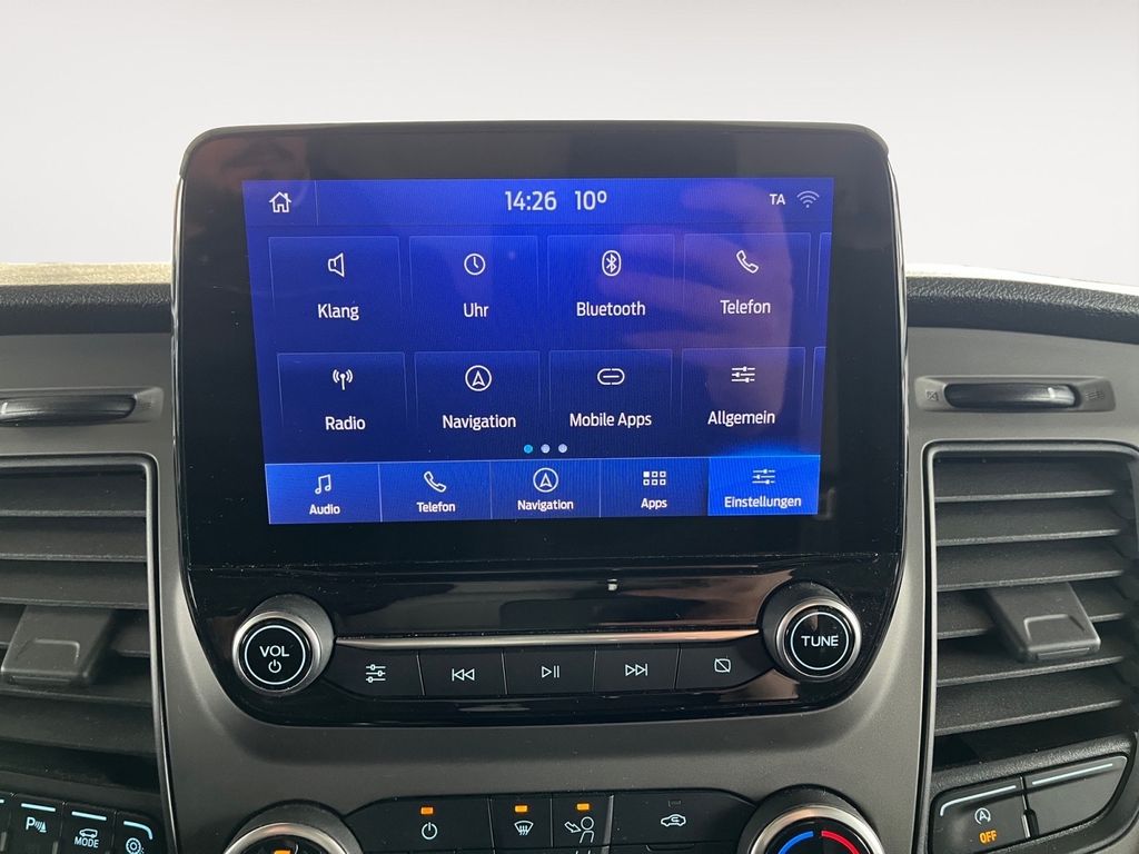 Airbag Beifahrerseite, Audiosystem 24/25: Navigationssystem inkl. SYNC 3 mit AppLink und 8" Multifunktionsdisplay, Batterieüberwachung programmierbar, Doppelschließanlage, Fahrassistenz-System: Park-Assistent (Active Park Assist), Fahrassistenz-System: Spurhalteassistent, Ford SYNC 3, Generator 240 A, Haltegriff B-Säule, Laderaumleuchte LED, Laderaumschutz-Paket, Metallic-Lackierung, Parksensoren seitlich, Schiebetür Lade-/Fahrgastraum rechts, Sicht-Paket 3, Sitz-Paket 9 / 15 Fahrersitz (4-fach verstellbar) - Beifahrerdoppelsitz inkl. Sitzheizung, Stoff, Verkleidung im Lade-/FG-Raum: Holz, Vlies-Batterie 80 Ah (AGM, 2 Batterien), Zentralverriegelung mit Doppelverriegelung