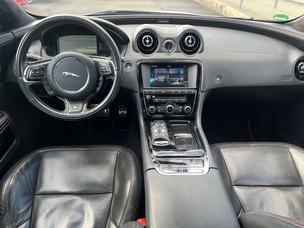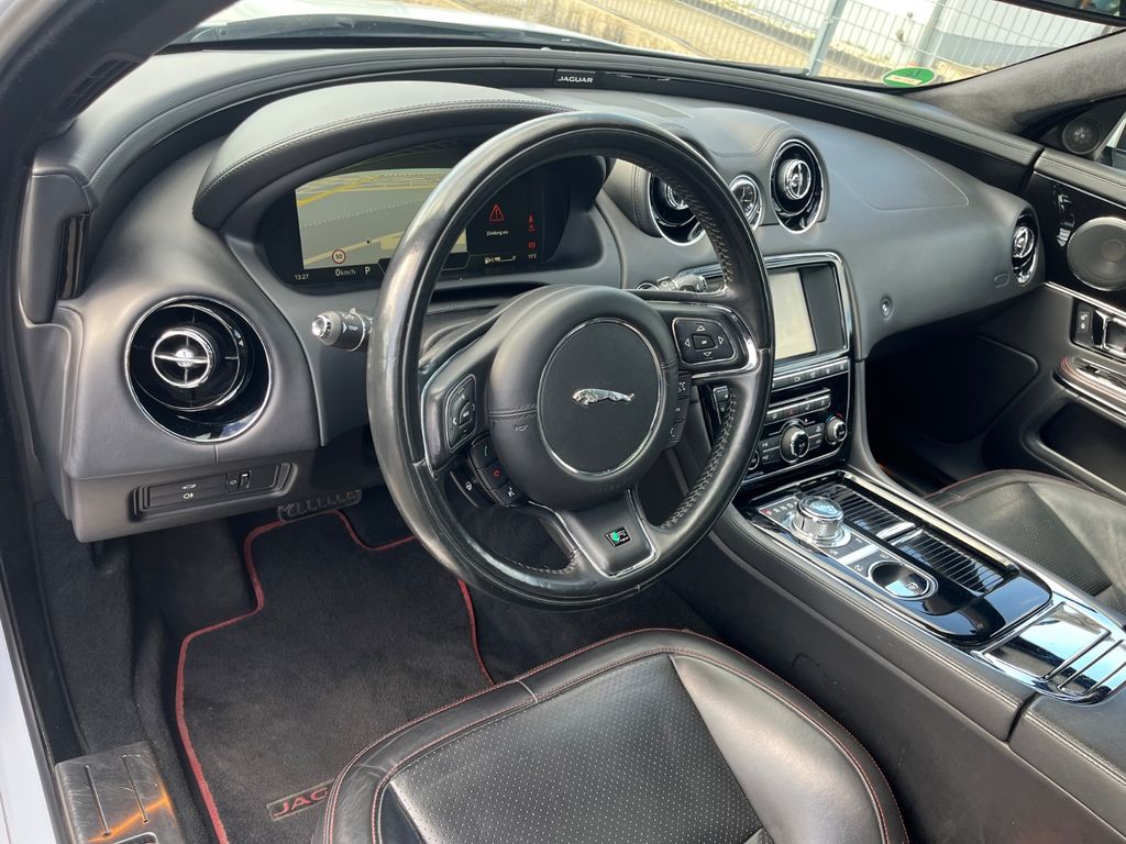 Adaptives Fahrwerk, Airbag Fahrer-/Beifahrerseite, Antriebsart: Heckantrieb, Audio Interface (Universal-Schnittstelle für iPod / AUX / USB / MP3), Audio-DVD-Navigationssystem mit Touchscreen-Farbdisplay, Audiosystem Meridian 380 Watt Premium-Klangsystem (CD/DVD), Außenspiegel elektr. anklappbar, mit Abblendautomatik, Außenspiegel elektr. verstell- und heizbar, Außenspiegel mit Memoryfunktion, Bordcomputer, Bremsassistent, Bremssättel Silber lackiert, Dachhimmel Premium-Velours, Elektron. Traktionskontrolle, Fensterheber elektrisch vorn + hinten, Frontscheibe Verbundglas, Fußgänger-Schutzsystem (Aktive Motorhaube PDBS), Fußmatten Premium, Geschwindigkeits-Regelanlage geländeabhängig (All Surface Progress Control, ASPC), Getränkehalter vorn, Heckklappenbetätigung elektrisch, Heckleuchten LED, Heckscheibe heizbar, Innenausstattung: Dekoreinlagen Piano Black, Innenausstattung: Leder Soft-Grain, Innenraumfilter: Pollenfilter, Innenspiegel mit Abblendautomatik, Instrumentenanzeige TFT-Infodisplay HD, Isofix-Aufnahmen für Kindersitz im Fond, JaguarVoice Sprachsteuerung, Karosserie: 4-türig, Klimaautomatik 4-Zonen, Kopf-Airbag-System (Windowbag), Kopfstütze hinten mitte, Lendenwirbelstütze Sitz vorn links und rechts, elektr. verstellbar, Lenksäule (Lenkrad) elektr. verstellbar, LM-Felgen, Mittelarmlehne hinten mit Getränkehalter, Mittelarmlehne vorn mit Ablagefach, Motor 3,0 Ltr. - 221 kW V6 Diesel KAT, Multimedia-System (Touchscreen-Farbdisplay, Steuerung für Audiosystem, Klimaanlage, Bluetooth), Niveauregelung automatisch, Panoramadach (Glas), Park-Distance-Control (PDC) hinten, Park-Distance-Control (PDC) vorn, Parkbremse elektronisch (EPB), R-Sport-Paket, Reifendruck-Kontrollsystem, Reserverad platzsparend (LM-Felge 18"), Schadstoffarm nach Abgasnorm Euro 6, Scheinwerfer LED, Schiebedach elektrisch, SCR-System (AdBlue-Technologie), Seitenairbag vorn und hinten, Sitz vorn links elektr. verstellbar (mit Memory), Sitzbezug / Polsterung: Leder Soft-Grain, Sitze vorn heizbar / klimatisiert, Sitzverstellung vorn elektr. (14/14-Wege links/rechts), Sitzverstellung vorn elektr. (18/18-Wege links/rechts), Soft-Close-Automatik für Türen, Sonnenschutzrollo an Türscheiben hinten, Stop-Start-Anlage, Zeituhr (Analog)