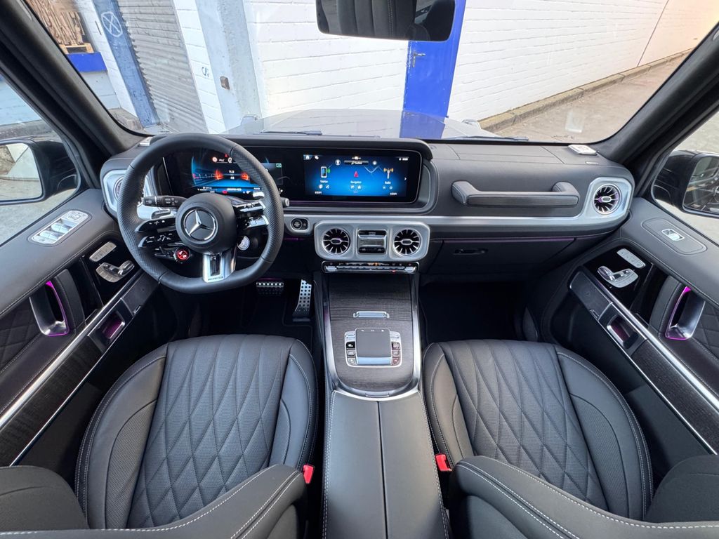 Erleben Sie die ultimative Kombination aus Luxus und Leistung mit diesem gebrauchten Mercedes-Benz G 63 AMG. Dieses beeindruckende Offroad-Fahrzeug verfügt über einen kraftvollen V8-Motor mit 585 PS und Allradantrieb, der für herausragende Fahreigenschaften auf jedem Terrain sorgt. Die schwarze Metallic-Lackierung und das schwarze Lederinterieur unterstreichen den eleganten, aber kraftvollen Charakter dieses Fahrzeugs. Erstregistriert in 2025, hat dieses Fahrzeug nur einen Vorbesitzer und kommt mit vollständiger Servicehistorie. Die Ausstattung lässt keine Wünsche offen: von der 3-Zonen-Klimaautomatik über das Panorama-Sonderdach bis hin zu beheizten und belüfteten Sitzen mit Massagefunktion. Modernste Technologien wie das digitale Cockpit, Apple CarPlay, kabelloses Laden und WLAN-Hotspot sorgen für optimalen Komfort und Konnektivität.