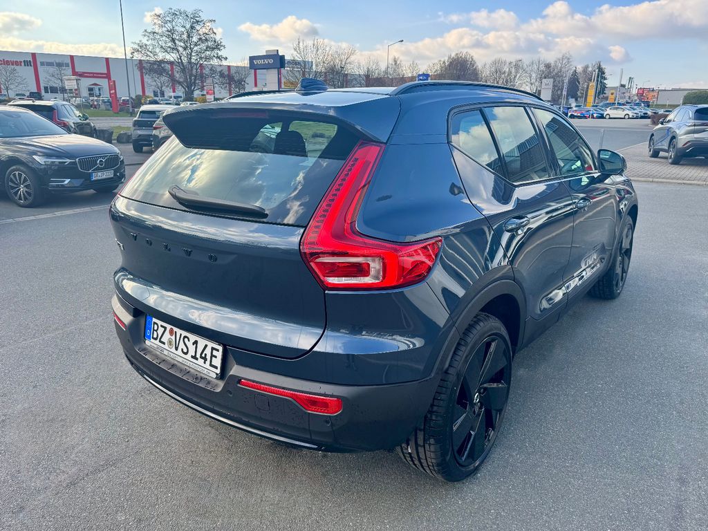 Weitere Ausstattung:Airbag Beifahrerseite, Airbag Beifahrerseite abschaltbar, Airbag Fahrerseite, Ambiente-Beleuchtung erweitert, Anhänger-Stabilisierungs-Programm (TSA) Vorbereitung, Antriebsart: Heckantrieb, Applikationen am Fahrzeugheck Hochglanz-Schwarz, Applikationen an den Seitenfenstern schwarz, hochglänzend, Außen-/Innenspiegel mit Abblendautomatik, Außenspiegel elektr. verstellbar, beide, Außenspiegel heizbar, Außenspiegel schwarz, hochglänzend, Befestigung für Abfallbeutel im Fond, Beinauflage manuell einstellbar, Sitze vorn, Betätigung Heckklappe/-Deckel automatisch, Blinkleuchten LED in Außenspiegel integriert, Convenient Entry & Start, Dachreling schwarz, hochglänzend, Dachspoiler Wagenfarbe, Digitale Instrumentierung 12,3"-Display 2. Generation, Durchladeeinrichtung (Mittelarmlehne hinten), Einparkhilfe vorn und hinten (hinten mit Bremsfunktion), Einstiegsleisten mit Schriftzug (Aluminium), Elektromotor 185 kW (cont. 128 kW, Extended Range), Erste Hilfe-Kasten / Verbandkasten, EX40, Fahrassistenz-Paket: Safety Assistance, Fahrassistenz-System: Bergabfahrkontrolle (HDC), Fahrassistenz-System: Berganfahr-Assistent (HSA), Fahrassistenz-System: Intelligent Speed Assist (ISA), Fahrassistenz-System: Multikollisionsbremse (Multi Collision Brake), Fensterheber elektrisch vorn + hinten, Frontstaufach / Frunk (Kofferraum, vorn), Fußraumleuchte vorn, Gepäckraum-Abtrennung (Netz), Gepäckraumboden variabel, Getriebe für Elektrofahrzeug, Getränkehalter in Mittelkonsole, Gurtstraffer, Heckscheibe heizbar, HV-Batterie 82 kWh brutto / 79 kWh netto (Lithium-Ionen), Induktionsladeschale für Smartphone, Infotainment-System: Android (DAB+), Infotainment-System: Android (DAB+) mit Premium Sound (Harman-Kardon), Isofix-Aufnahmen für Kindersitz (Beifahrersitz, Rücksitz), Karosserie: 5-türig, Kindersicherung elektr. betätigt, Klimaautomatik 2-Zonen, Knieairbag Fahrerseite, Kopf-Airbag-System, Kühlergrill schwarz, hochglänzend, Ladekabel (6,0 m) mit Typ 2-Stecker (Mode 3), Lendenwirbelstützen vorn, elektr. verstellbar (4-Wege), Lenkrad (Kunstleder) mit Multifunktion, Lenksäule (Lenkrad) höhen-/längsverstellbar, Leseleuchten vorn und hinten, LM-Felgen, Luftqualitäts-Überwachungssystem erweitert (Clean Zone Interior Package CZIP), Make-up-Spiegel beleuchtet, Metallic-Lackierung, Modellpflege, Motorsound-System (Audible Vehicle Alert System, AVAS), Nebelschlussleuchte, One Pedal Drive (elektronisches Gaspedal), Parkbremse elektrisch, Radstand Standard, Reifen-Reparaturset, Reifendruck-Kontrollsystem, Rückfahrkamera, Rücksitzlehne geteilt/klappbar, Scheinwerfer LED, Schleudertrauma-Schutzsystem (WHIPS), Seitenairbag vorn, Service-System: Plug & Charge, Sicherheitsgurte vorn höhenverstellbar, Sitz vorn links höhen-/neigungsverstellbar, Sitz vorn rechts höhenverstellbar, Sitzbezug / Polsterung: Textil, Sitzheizung vorn, Smartphone Schnittstelle (Apple CarPlay), Standheizung elektrisch, Taschenhaken im Gepäckraum, Textilfussmatten, USB-Anschlüsse, je 2 vorn und hinten, Verglasung getönt, Volvo Car Connect, Volvo Car Connect Plus, Warnanlage für Sicherheitsgurte vorn und hinten, Wärmepumpe zur Reichweitenoptimierung, Regensensor, Sitzheizung vorn