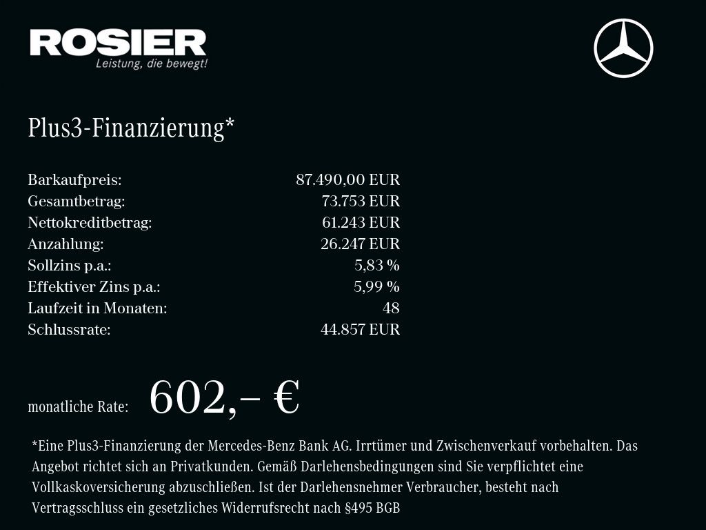 Burmester Surround Soundsystem, Navigation / Online Navigation, Radio, Audiosystem MP3-fähig, DAB Tuner, Controller auf Mittelkonsole, Induktionsladeschale für Smartphone / Wireless Charging, MBUX Multimediasystem.