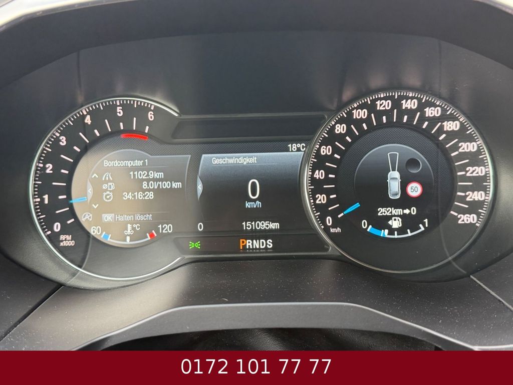 Aktive Geräuschkompensation, Antischlupfregelung (ASR), Audiobedienung am Lenkrad, Außenspiegel elektr. anklappbar, Außentemperaturanzeige, Blinkleuchte in Außenspiegel integriert, Brillenfach in Dachhimmel / Dachkonsole integriert, Coming-Home-Lichtfunktion, Dachhimmel Stoff, Dachspoiler Wagenfarbe, Doppelendrohr Auspuffanlage, Einstiegsleisten beleuchtet, Elektr. Bremskraftverteilung (EBD), Fahrassistenz-System: Berganfahr-Assistent (Hill-Holder), Fahrassistenz-System: Pre-Collision-System, Fahrassistenz-System: Spurhalteassistent mit Müdigkeitserkennungs-Sensor, Fahrassistenz-System: Verkehrsschildassistent, Fensterheber elektrisch vorn + hinten mit Komfortschließung, Fußmatten Premium, Gepäckraumabdeckung / Rollo, Heckleuchten LED, Innenraumfilter: Staub- und Pollenfilter, Innenspiegel mit Abblendautomatik, Intelligent Protection System (IPS), Isofix-Aufnahmen für Kindersitz, Karosserie: 5-türig, Klimaautomatik 2-Zonen, Kofferraumdeckel / Heckklappe elektr. betätigt (Öffnung, sensorgesteuert), Kopfstützen hinten mechan. verstellbar (3 Stück), Lenksäule (Lenkrad) höhenverstellbar, LM-Felgen, Mittelkonsole, Motor 2,0 Ltr. - 154 kW TDCi Bi-Turbo KAT, My Key (2. Fahrzeugschlüssel programmierbar), Navigationssystem: Sony (mit Ford SYNC), Nebelscheinwerfer mit Einfassung schwarz glänzend, Parkpilotsystem vorn und hinten, Pedale Aluminium, Radstand 2850 mm, Raucher-Paket, Reifendruck-Kontrollsystem, Reserverad als Notrad, Rückfahrkamera, Schadstoffarm nach Abgasnorm Euro 6, Schalt-/Wählhebelgriff Leder, Schaltpunktanzeige, Scheinwerfer-Assistent mit Tag-/Nachtsensor, Seitenschweller Wagenfarbe, Sitz vorn links höhenverstellbar, Sitzbezug / Polsterung: Stoff/Leder, Sonnenblende links mit Spiegel (beleuchtet), Sonnenblende rechts mit Spiegel (beleuchtet), Sport-Fahrwerk, Sportsitze vorn, ST, Start/Stop-Anlage, Steckdose 230V, Stoßfänger Wagenfarbe, Türgriffe außen Wagenfarbe, Verglasung getönt, Verglasung hinten abgedunkelt (Privacy Glass), Warnanlage für Sicherheitsgurte hinten, Warnanlage für Sicherheitsgurte vorn