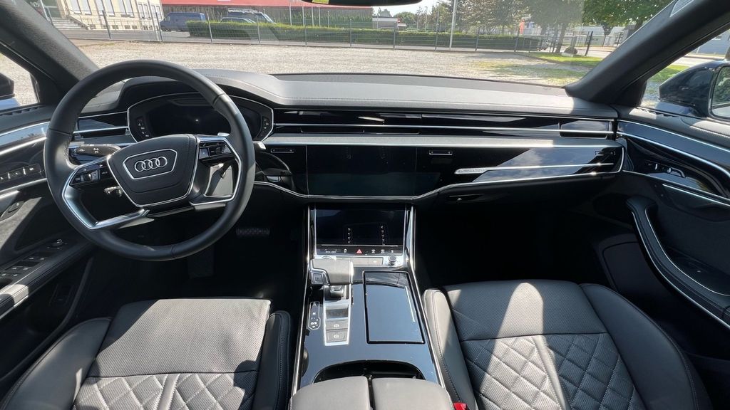 Sonderausstattung:Audi connect Schlüssel, Außenspiegel schwarz, Dachhimmel Stoff, schwarz, Doppelverglasung / Akustikglas, Exterieur-Paket S line, Head-up-Display, Innenausstattung: Dekoreinlagen Klavierlack, schwarz, Komfort-Individualkontursitz-Paket, Leder-Paket, LM-Felgen 8x19 (5-Arm, für Winterbereifung), Metallic-Lackierung, Neuwagen-Reifengarantie, Optik-Paket schwarz plus, Panorama-Ausstelldach elektrisch, Servoschliessung für Türen, Sitzbelüftung und Massagefunktion vorn, Sitzbezug / Polsterung: Leder Valcona mit Rautensteppung, Sonnenschutzrollo an Heckscheibe und Seitenscheibe hinten elektr., Sound-System Bang & Olufsen, Sport-Fahrwerk (adaptive air suspension - sport), Standheizung, Verglasung hinten abgedunkelt (Privacyverglasung)