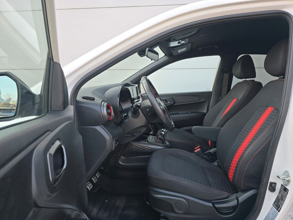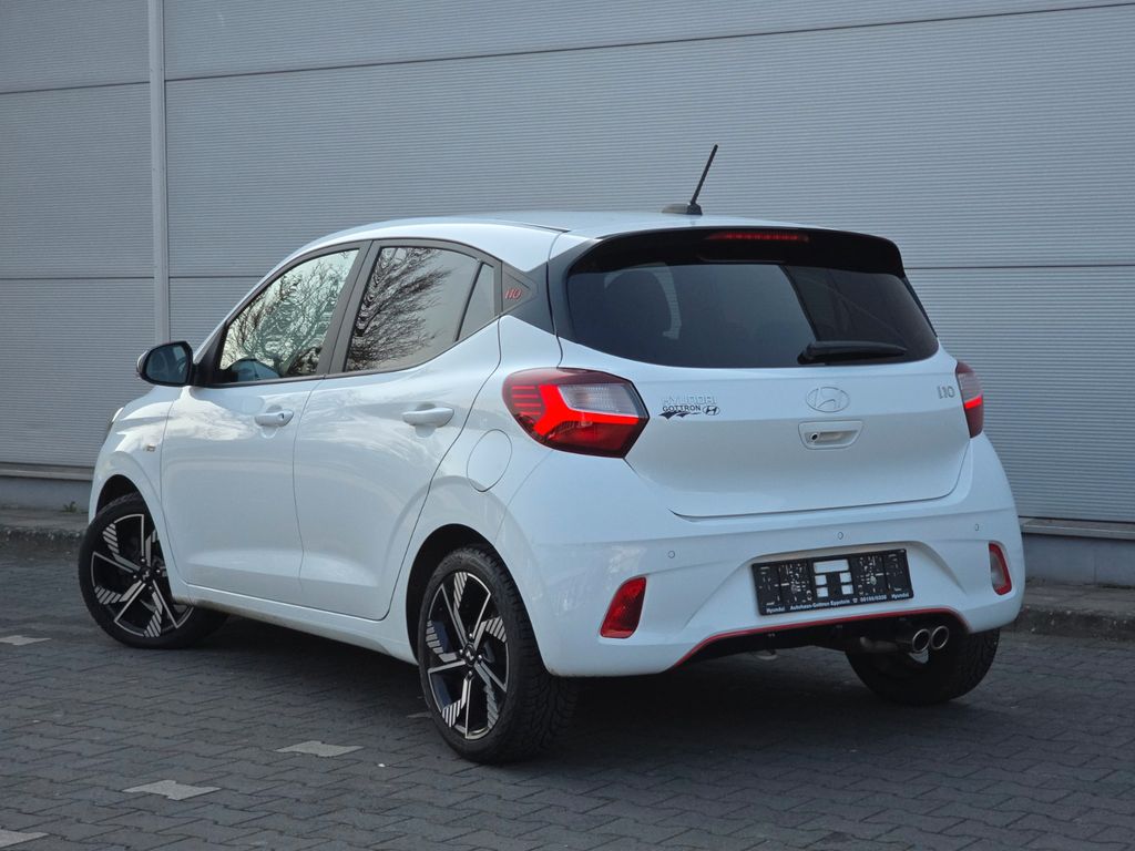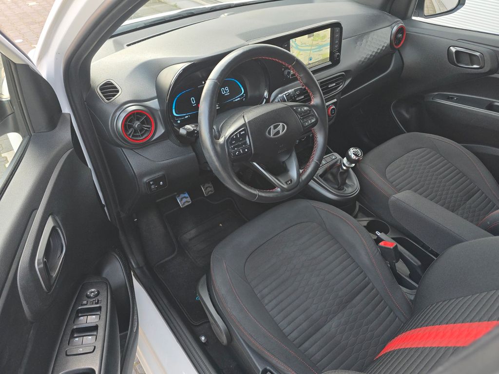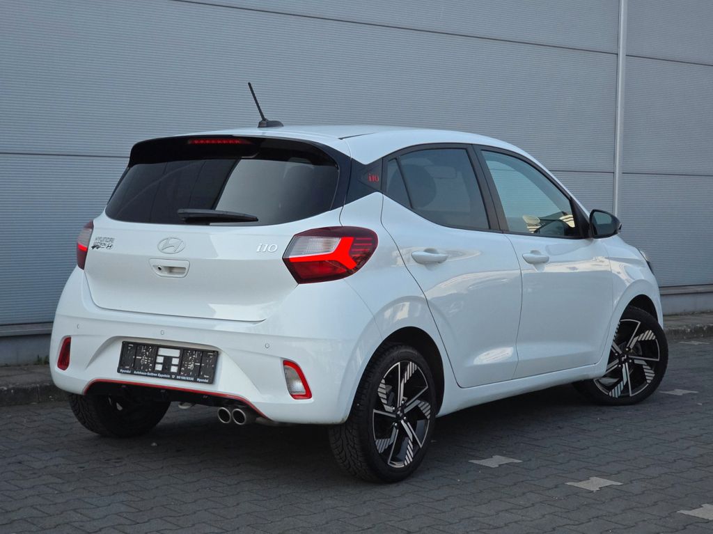 2 Lautsprecher, 3. Bremsleuchte, Ablagebox / Stauraum unter Kofferraumboden, Airbag Beifahrerseite, Airbag Beifahrerseite abschaltbar, Airbag Fahrerseite, Aktives Bremslicht (ESS), Audiobedienung am Lenkrad, Audiosystem: Radio RDS, Außenspiegel elektr. anklappbar, Außenspiegel elektr. verstell- und heizbar, beide, Außenspiegel Phantom Black, Blinkleuchte in Außenspiegel integriert, Bordcomputer, Bordcomputer mit TFT-Farbdisplay, hochauflösend, Dachhimmel schwarz, Dachspoiler, Design- und Ausstattungslinie N Line, Einparkhilfe hinten, Einschaltautomatik für Fahrlicht / Lichtsensor, Elektr. Bremskraftverteilung, Elektron. Stabilitätskontrolle (ESC) mit Bremsassistent, Fahrassistenz-System: aktiver Spurhalteassistent (LKAS, Lane Keep Assist System), Fahrassistenz-System: Aufmerksamkeits-Assistent, Fahrassistenz-System: Autonome Notbremsfunktion inkl. Frontkollisionswarnung (FCA), Fahrassistenz-System: Berganfahrhilfe, Fahrassistenz-System: Fernlichtassistent, Fahrassistenz-System: Sicherheitssystem mit automatischem Notruf (ERA GLONASS / eCall), Fahrassistenz-System: Verkehrszeichenerkennung, erweitert (Geschwindigkeits-Regel-/Begrenzeranlage), Fensterheber elektrisch hinten, Freisprecheinrichtung Bluetooth, Gepäck-/Laderaumleuchte, Geschwindigkeits-Begrenzeranlage (Speed-Limiter), Getränkehalter vorn, Gurtstraffer, Heckleuchten LED, Heckscheibe heizbar, Heckscheibenwischer, Isofix-Aufnahmen für Kindersitz, Karosserie: 5-türig, Komfort-Paket, Kopf-Airbag-System, Kopfstützen hinten verstellbar, Lenkrad heizbar, Lenkrad mit Multifunktion, Lenksäule (Lenkrad) höhenverstellbar, Lifetime MapCare (Internetbasierende Dienste), LM-Felgen, Mineraleffekt-Lackierung Mangrove Green, Modellpflege, Motor 1,0 Ltr. - 74 kW TGDI KAT, Navigationssystem, Nebelschlussleuchte, Otto-Partikelfilter (OPF), Projektor-Scheinwerfer, Radioempfang digital (DAB+), Reifen-Reparaturkit, Reifendruck-Kontrollsystem, Rückfahrkamera, Rücksitzlehne geteilt/klappbar, Schadstoffarm nach Abgasnorm Euro 6d, Schalt-/Wählhebelgriff Leder, Seitenairbag vorn, Service-System: Online Update OTA (Over The Air), Sitz vorn links höhenverstellbar, Sitzbezug / Polsterung: Stoff, Sitzheizung vorn, Smartphone Schnittstelle (Apple CarPlay & Android Auto), Start/Stop-Anlage, Stoßfänger Wagenfarbe, Türgriffe außen Wagenfarbe, USB-Anschluss Mittelkonsole, Verglasung hinten abgedunkelt (Privacy Glass), Warnanlage für Sicherheitsgurte, Fahrer-/Beifahrerseite, Sitzheizung vorn