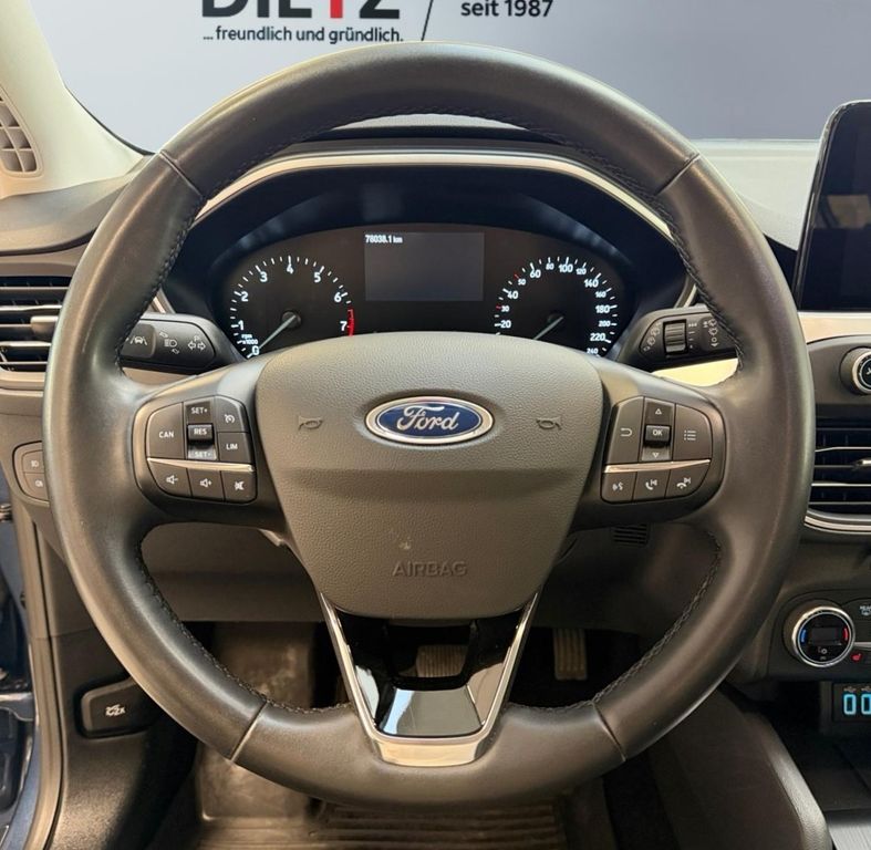 Airbag Beifahrerseite abschaltbar, Antischlupfregelung (ASR), Außenspiegel elektr. verstell- und heizbar, Blinkleuchte in Außenspiegel integriert, Bord-/Verbrauchscomputer, Chromeinfassung Seitenscheiben, Dachhimmel Stoff, Dachreling (Aluminium), Dachspoiler Wagenfarbe, Dimmer Instrumentenbeleuchtung, Elektr. Bremskraftverteilung (EBD), Fahrassistenz-System: Berganfahr-Assistent (Hill-Holder), Fahrassistenz-System: Notbrems-Assistent, Fahrassistenz-System: Post-Collision-System, Fahrassistenz-System: Pre-Collision-System, Fahrassistenz-System: Spurhalteassistent, Farbdisplay für Bordcomputer, Fensterheber elektrisch vorn + hinten mit Komfortschließung, FordPass Connect inkl. eCall, Fußmatten Teppich, Fußmatten Velours - vorn, Gepäckraumabdeckung / Rollo, Getriebe Automatik - Typ: 8F24 (8-Stufen), Innenraumfilter: Staub- und Pollenfilter, Intelligent Protection System (IPS), Intelligenter Geschwindigkeits-Begrenzer, Isofix-Aufnahmen für Kindersitz, Karosserie: 5-türig, Kopfstützen hinten mechan. verstellbar (3 Stück), Kopfstützen vorn 4-fach verstellbar, Laderaumboden verstellbar, Lenksäule (Lenkrad) höhen-/längsverstellbar, LM-Felgen, Mittelkonsole Premium, Modellpflege, Motor 1, 0 Ltr. - 92 kW EcoBoost KAT, My Key (2. Fahrzeugschlüssel programmierbar), Nebelscheinwerfer LED, Otto-Partikelfilter (OPF), Parkbremse elektrisch mit Auto-Hold-Funktion, Parkpilotsystem vorn und hinten, Reifen-Reparaturkit, Reifendruck-Kontrollsystem, Rücksitzlehne geteilt/klappbar (60:40), Schalt-/Wählhebelgriff Leder, Schaltpunktanzeige, Scheinwerfer LED, Scheinwerfer-Assistent mit Tag-/Nachtsensor, Sitz vorn links höhenverstellbar, Sonnenblende links mit Spiegel, Sonnenblende rechts mit Spiegel, Sportsitze vorn, Start/Stop-Anlage, Steckdose (12V-Anschluß) im Koffer-/Laderaum, Verglasung getönt, Warnanlage für Sicherheitsgurte hinten, Warnanlage für Sicherheitsgurte vorn, Zylinderabschaltung, Geschwindigkeitsbegrenzer mit vorausschauender Regelung