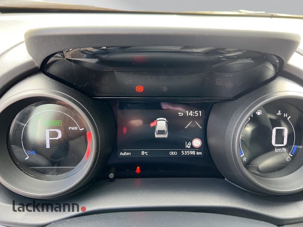 - Weiteres: Reifendruck-Kontrollsystem, Sitzbezug / Polsterung: Stoff, Rückfahrkamera, Schalt-/Wählhebelgriff Leder, Scheibenwischer mit Regensensor, Reifen-Reparaturkit, Heckleuchten LED, LM-Felgen, Schadstoffarm nach Abgasnorm Euro 6d, Getriebe Automatik stufenlos - Multidrive ECVT, Innenraumfilter: Staub- und Pollenfilter mit Aktivkohlefilter, Audiosystem: Multimedia Toyota Touch, Airbag Fahrer-/Beifahrerseite, Anti-Blockier-System (ABS), Stoßfänger Wagenfarbe, Tagfahrlicht LED, Seitenairbag vorn, Außenspiegel elektr. verstell- und heizbar, Kopf-Airbag-System, USB-Schnittstelle, Lenksäule (Lenkrad) verstellbar, Park-Assistent mit Rückfahrkamera, Rücksitz geteilt, Metallic-Lackierung, 12V-Steckdose, Aktive Kopfstützen, Antriebsart: Frontantrieb, Audiobedienung am Lenkrad, Autom. Begleitfunktion der Beleuchtung (Follow me home), Berganfahrkontrolle (HAC), Bluetooth-Schnittstelle, Bremsassistent, DAB-Tuner (Radioempfang digital), Eco-Anzeige für verbrauchsoptimiertes Fahren, Elektr. Bremskraftverteilung, ESP mit Schlupfregelung (VSC mit TRC), Fensterheber elektrisch vorn und hinten, Fernlichtassistent (Abblendautomatik Fahrlicht, AHB), Freisprechanlage Bluetooth, Geschwindigkeits-Begrenzeranlage, Gurtwarner hinten, Heckspoiler, Isofix-Aufnahmen für Kindersitz, Kindersicherung elektr. betätigt, Klimaautomatik, Kopfstützen hinten, Lederlenkrad, Müdigkeitserkennungs-Sensor, Nebelscheinwerfer LED, Parkbremse elektrisch (EPB), Pre-Collision-System (PCS), Rücksitz klappbar, Servolenkung elektrisch, Sicherheitssystem Toyota Connect mit automatischem Notruf (eCall), Sitzhöhenverstellung, Sitzhöhenverstellung Fahrersitz, Smartphone-Integration x-connect (Apple CarPlay und Android Auto), Spurhalteassistent, Türgriffe lackiert, Verkehrszeichenerkennung (RSA), Warnanlage für Sicherheitsgurte vorn, ZV mit Fernbedienung